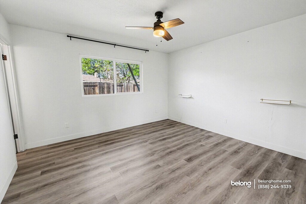 Sunlit interiors and an open, modernized layout give this 4-bedroom, 2-bath home a comfortable feel that carries throughout the space. Wide plank flooring and a neutral palette reflect natural light easily, helping shared areas feel open and welcoming. Living and dining spaces connect naturally, offering flexibility for everyday routines and relaxed gatherings. The kitchen comes with clean-lined cabinetry, generous prep surfaces, and an island that anchors the room while keeping sightlines open. Nearby, a stately fireplace creates a visual focal point that adds character to the main living area. Each bedroom offers comfortable proportions for sleeping, working, or unwinding, while the two bathrooms are positioned for convenient daily use. Sliding glass doors extend the living space outdoors, opening to a private yard with a covered patio that supports casual dining, lounging, or weekend projects under open skies. Set within Escondido, daily errands and outings stay easy with nearby options like Vons, Trader Joe’s, and shopping at North County Mall. Coffee shops, local dining, and green spaces such as Felicita County Park round out the neighborhood, offering a balance of convenience and outdoor enjoyment. *Fireplace is for decorative use only and cannot be used without consent from Belong. *Our homes come as-is with all essentials in working order. Want upgrades? Request it through the Belong app, and our trusted pros will take care of the rest!