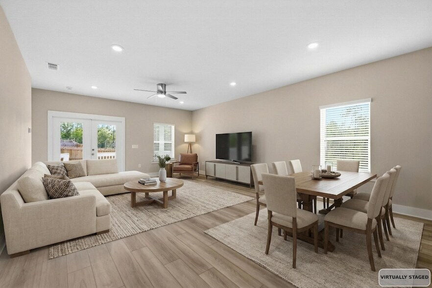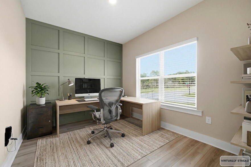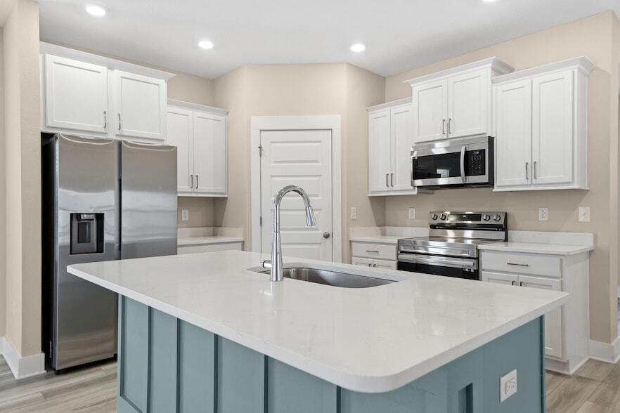 Freshly painted 3/2 in South Crestview and offers stylish updates throughout. The interior features fresh paint, a designer feature wall in the office, and a beautifully painted kitchen island that adds a custom touch to the heart of the home. The open kitchen is perfect for entertaining with white 42'' cabinets, quartz countertops, a breakfast bar, stainless steel appliances, and a spacious pantry. Laminate flooring throughout the main living areas makes the home both attractive and easy to maintain. The primary suite includes a large walk-in closet, en suite bath with a double vanity, a soaking tub, and a separate shower. The dedicated home office provides the perfect work-from-home setup. EV Car Charger
