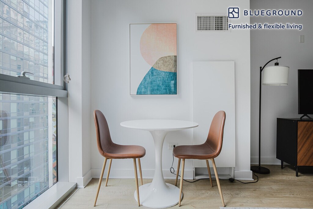 Show up and start living from day one in Chicago with this spacious one bedroom Blueground apartment. You’ll love coming home to this thoughtfully furnished, beautifully designed, and fully equipped Chicago Loop home with stunning high floor views over the city. (ID #CHI1188) The advertised rate of $1,500/month is the lowest available price, based on a 2 month(s) and 27 day(s) stay with a move-in date of December 15, 2025. If you’re looking for a 1-year stay, the rate is $2,710/month. Rates vary depending on the duration of stay, season, and other parameters. For exact pricing and additional pricing components, please visit our website and enter your desired move-in and move-out dates. The rate is applicable when billed upfront; it can be higher if billed in multiple payments. Brokers are welcome to reach out. Were you looking for an unfurnished lease? Try Blueground instead and upgrade from unfurnished to furnished living: - Furnished at rates comparable to unfurnished - No setup or furniture costs - save thousands - Move-in ready - save time, just bring your suitcase Designed with you in mind As with any Blueground apartment, you’ll find a thoughtfully designed space complete with beautiful furniture and a fully equipped kitchen in this one bedroom property. And, thanks to our superior quality mattresses, luxury linens, and towels, you can relax knowing you’ll always feel comfortably at home. When you’re ready for some fun, you can take in the Chicago vibes or bring the entertainment to you with the premium wireless speaker or smart TV. This apartment also offers in-apartment laundry. Sleeping arrangements Queen Bed, 63in/160cm Amenities Building amenities unique to this one bedroom apartment include an on-site: - BBQ Area - Doorman - Dryer - Elevator - Game room - Swimming pool - Washing machine - Lounge - Pets allowed Arrival and ongoing support The entire apartment is yours to enjoy! Throughout your stay, you’ll have access to our Client Experience team through the Blueground App. You can schedule additional cleanings, submit maintenance requests, and view our neighborhood recommendations with just a few taps. We’ll share all details upon confirmation of your stay. Other things to note Building amenities may have an extra cost. This Blueground apartment has flexible lease options, allowing you to book it for one month, a year, or more. Pets are welcome, though weight limits and breed restrictions apply and may incur fees. We take great pride in ensuring every photo displayed is shot in our own units with our actual furnishings. That said, we regularly refresh our decor and furniture arrangement, which may differ from what’s pictured. [SI]