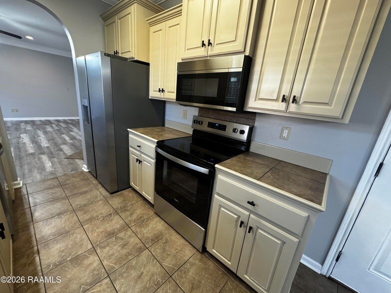 This well-maintained 3-bedroom, 2-bath home is ideally located near I-49 and I-10 with convenient access to shopping, dining, and local amenities. The home features a split floor plan, cozy fireplace, built-in desk nook, and a spacious yard. Appliances included are refrigerator, stove, oven, microwave, and dishwasher, with washer and dryer connections available. Additional highlights include a 2-car garage.