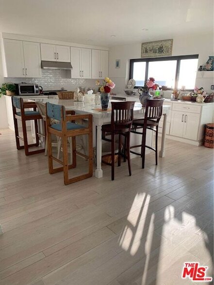 Available from December 1st, 2025 to May 31, 2026, No Pets. Stunning Ocean Views from this huge, upscale, 3 level beach house with 4 Bedrooms, 4 Bathrooms, turn-key furnished with upscale art and antiques, formal dining room, laundry room, patio and lovely gardens, two 75-inch super smart TVs, 2-car garage, serene & spectacular location in Silicon Beach. Walk or take the bike path to the Marina Rey Channel, or the pedestrian bridge to Marina del Rey. Prime, unique Playa Del Rey beach location, completely private, just above the waves, surrounded by other large and stately homes, great neighbors, only moments from Marina Del Rey and LAX. Formal entry leads up to the huge ocean view great room, the size of a double living room, with decorative fireplace, wrap-around breathtaking view decks, comfortable sitting areas & built-in cabinetry, 75-inch smart TV, beautiful paintings and sculptures. On the entry level there is a guest bathroom with tub/shower. As you arrive at the second level, you will be immediately amazed by the breathtaking views and the expansive open floor plan of the main living level with huge double- living room, very large chef's kitchen with dramatic views, enormous island with seating, quartz countertops, commercial size refrigerator, microwave, toaster oven, 6-burner Italian gas range, and dining area, plus formal dining room overlooking and opening to a brick paver patio and tiered garden with an outdoor shower. The large great room has an abundance of sofas and comfy chairs. There is a 75-inch flat-screen TV mounted over the decorative fireplace with Direct satellite TV, and a few games and many books, including a cookbook collection stored in the cabinets, in case you want to augment time gazing at the sea (unlikely). A full bathroom (and a lot more artwork) completes the second level. The upper level boasts another sitting area and 4 bedrooms. The luxurious gigantic master suite has a king bed, a couch to gaze at the sea (or just gaze from the comfort of your bed), a walk-in closet, 75-inch smart TV over a decorative fireplace with Direct TV, multiple sliding glass doors and balcony, large bathroom with tiled, glass enclosed shower and beautiful porcelain soaking tub, all with awe-inspiring panoramic ocean views. Another lovely King bedroom with equally awe-inspiring views, shares the wrap around balcony. The two additional bedrooms, one with King bed and one with Queen, have their own charming garden views, with large walk-in closets.