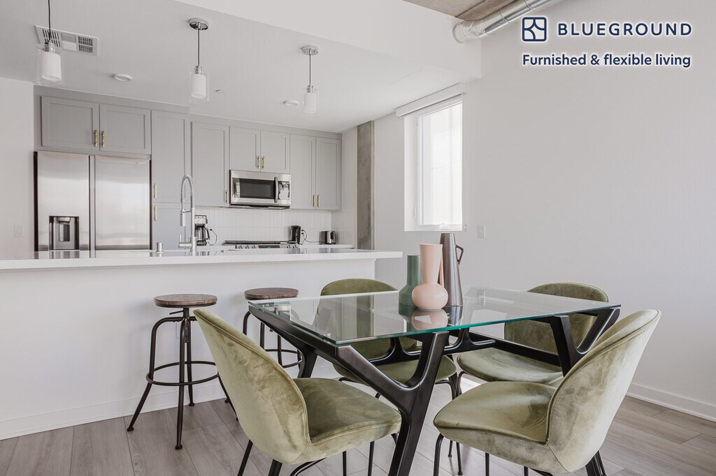Show up and start living from day one in Long Beach with this beautiful two bedroom Blueground apartment. You’ll love coming home to this thoughtfully furnished, beautifully designed, and fully equipped Downtown Core home. (ID #LAX1263) The advertised rate of $3,740/month is the lowest available price, based on a 11 month(s) and 21 day(s) stay with a move-in date of December 25, 2025. Rates vary depending on the duration of stay, season, and other parameters. For exact pricing and additional pricing components, please visit our website and enter your desired move-in and move-out dates. The rate is applicable when billed upfront; it can be higher if billed in multiple payments. Brokers are welcome to reach out. Were you looking for an unfurnished lease? Try Blueground instead and upgrade from unfurnished to furnished living: - Furnished at rates comparable to unfurnished - No setup or furniture costs - save thousands - Move-in ready - save time, just bring your suitcase Designed with you in mind As with any Blueground apartment, you’ll find a thoughtfully designed space complete with beautiful furniture and a fully equipped kitchen in this two bedroom property. And, thanks to our superior quality mattresses, luxury linens, and towels, you can relax knowing you’ll always feel comfortably at home. When you’re ready for some fun, you can take in the Long Beach vibes or bring the entertainment to you with the premium wireless speaker or smart TV. This apartment also offers in-apartment laundry. Sleeping arrangements King Bed, 70.8in/180cm Queen Bed, 63in/160cm Amenities Building amenities unique to this two bedroom apartment include an on-site: - BBQ Area - Dryer - Elevator - Swimming pool - Washing machine - Lounge - Parking - Pets allowed Arrival and ongoing support The entire apartment is yours to enjoy! Throughout your stay, you’ll have access to our Client Experience team through the Blueground App. You can schedule additional cleanings, submit maintenance requests, and view our neighborhood recommendations with just a few taps. We’ll share all details upon confirmation of your stay. Other things to note Building amenities may have an extra cost. This Blueground apartment has flexible lease options, allowing you to book it for one month, a year, or more. Pets are welcome, though weight limits and breed restrictions apply and may incur fees. Parking is offered based on availability and is subject to a fee. We take great pride in ensuring every photo displayed is shot in our own units with our actual furnishings. That said, we regularly refresh our decor and furniture arrangement, which may differ from what’s pictured. [SI]
