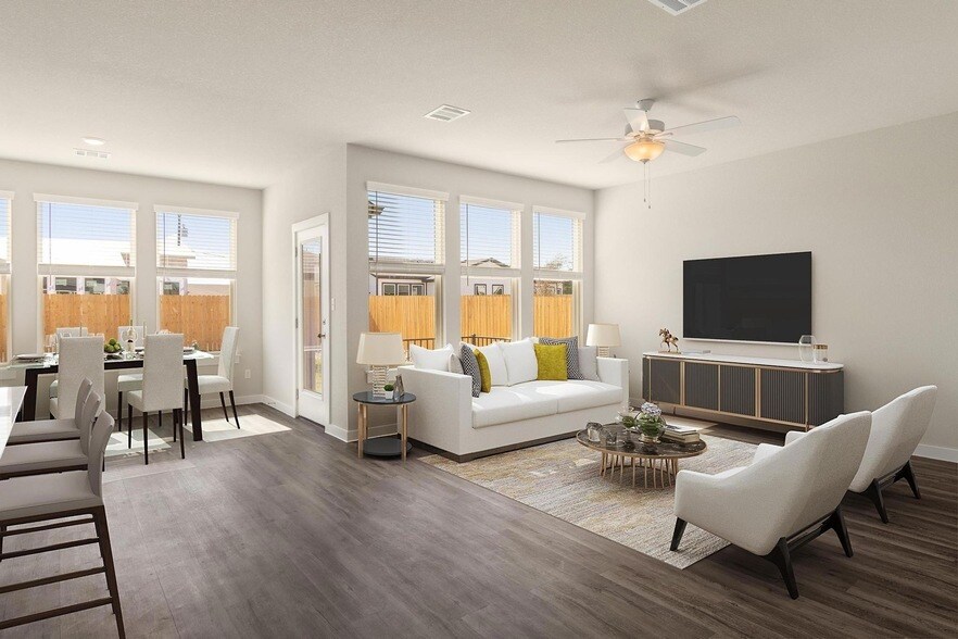 This 1,519 sq ft unit features a sleek, open-concept layout with seamless flow between the living, dining, and kitchen spaces. Thoughtful upgrades recessed lighting, wood-look vinyl flooring, and contemporary fixtures maximize appeal while minimizing long-term maintenance. The well-appointed kitchens include electric cooktops, ovens, dishwashers, microwaves, and refrigerators, plus a walk-in pantry an amenity package that keeps renters happy and occupancy high.Fall in love with the private fenced yards, in-unit laundry room, and smart single-story design that enhances livability and reduces upkeep costs. Central HVAC and energy-efficient construction support predictable operating expenses year-round. 2-car garage and additional driveway parking, increasing functionality for multi-car households. Pet-friendly policies (with conditions)