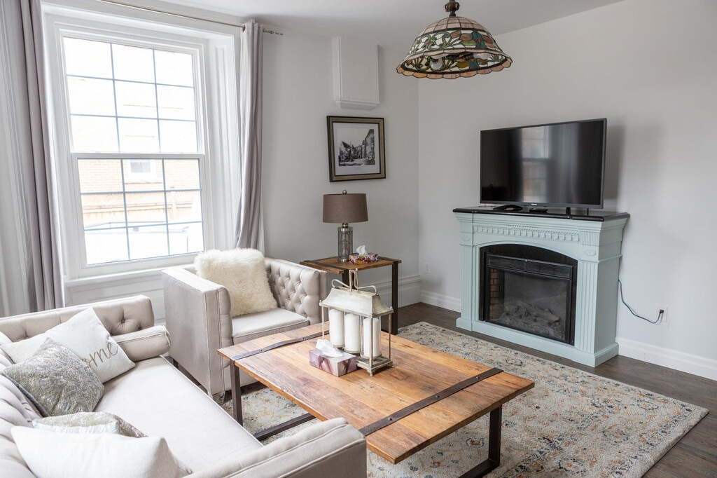 This newly renovated apartment, located on the first floor, offers the perfect combination of modernity and convenience. Situated right off HWY ON - 403 W and just 3 minutes from downtown Burlington, this apartment is surrounded by many spectacular dining options within walking distance. The comfy mattresses ensure you have the best sleep every time, and with your very own fully equipped kitchen, you'll feel at home. Our professional housekeeping and management team will make sure you have a wonderful stay every time. Step into Edin Manor, a stunning property that comprises 7 fully restored apartment units. Your unit boasts soaring ceilings, elegant thick baseboards, and an electric fireplace for added warmth and comfort. With high-quality linens, memory foam mattresses, and all the amenities of a home, such as a fully equipped kitchen, this apartment is ideal for extended stays. Located just a 10-minute walk from Burlington GO and a quick 5-minute drive from downtown Burlington, you're also within 7-10 minutes of shopping malls. Both Toronto and Niagara Falls are just a 30-minute drive away. Nestled in the heart of Burlington, it's a short distance from the Burlington Lakefront, boutiques, fine dining, and theatre. Walking distance to restaurants and shopping, and a 5-minute drive to downtown Burlington and Lakefront. No smoking or vaping inside or near exits, and parties are not permitted. Maintain low noise levels out of respect for neighbors. Your unit is fully private; however, the driveway, yard, and laundry room are communal spaces. Replacement fees apply for missing or damaged items, and please refrain from taking provided towels, sheets, and toiletries. Clean up after pets if they accompany you. Outdoor areas are monitored by surveillance. Check-in is anytime after 3:00 PM. Security is paramount with smart door locks that change entry codes after every guest and CCTV cameras covering all outdoor areas and the property entrance. [SI]