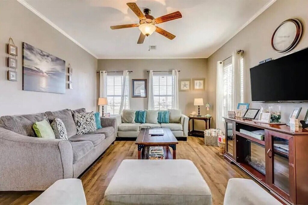 This stylish 3-bedroom, 2-bathroom getaway offers a serene escape, accommodating up to 8 guests with a king-size bed, two queen-size beds, and a pull-out sofa. Just a 1-minute drive or a 9-minute walk to the beach, this home is perfectly placed for sun, sand, and unforgettable sunsets, making it the ultimate beachside retreat. This home provides ample space for relaxation, featuring three bedrooms: two with queen-size beds and a master with a king-size bed and private bathroom. The living room includes a queen-size pull-out couch for extra sleeping space. Guests can enjoy the convenience of a washer and dryer, as well as an outdoor shower after a day at the beach. The fully stocked kitchen makes meal preparation easy, ensuring you feel right at home. Located just a short distance from the beach, this home offers easy access to sun, sand, and sea. Whether you're here to unwind or explore, you're perfectly positioned to enjoy all the coastal attractions and breathtaking sunsets. Smoking is not allowed inside the house, and pets are not permitted. The property utilizes a septic system, so only toilet paper should be flushed. Parking on the septic system or grass is prohibited, and the roadway must remain unblocked. Fryers and fires are not allowed on the deck or in the yard. Guests are asked to limit loud late-night activities to avoid disturbing neighbors. All trash must be bagged and taken to the street-side receptacle for pick-up. The thermostat is an econo system and will automatically adjust, so please do not change it. The use of tents, RVs, campers, or motor homes is not allowed on the premises. Guests should leave the house as they found it and not move furniture. Exceeding the maximum number of guests allowed per the rental contract is prohibited. [SI]