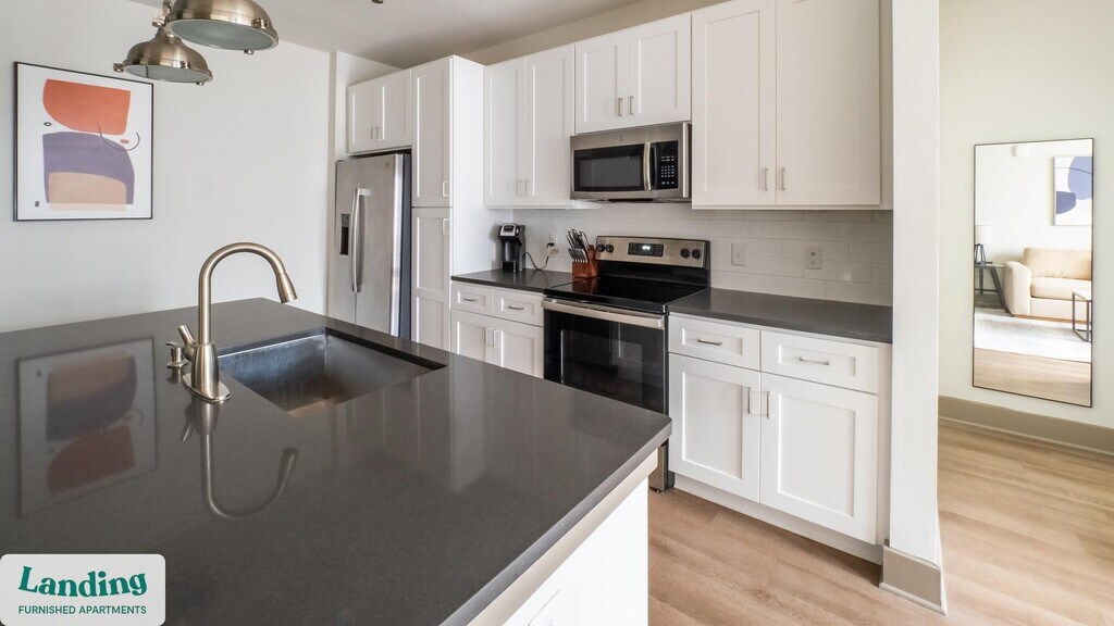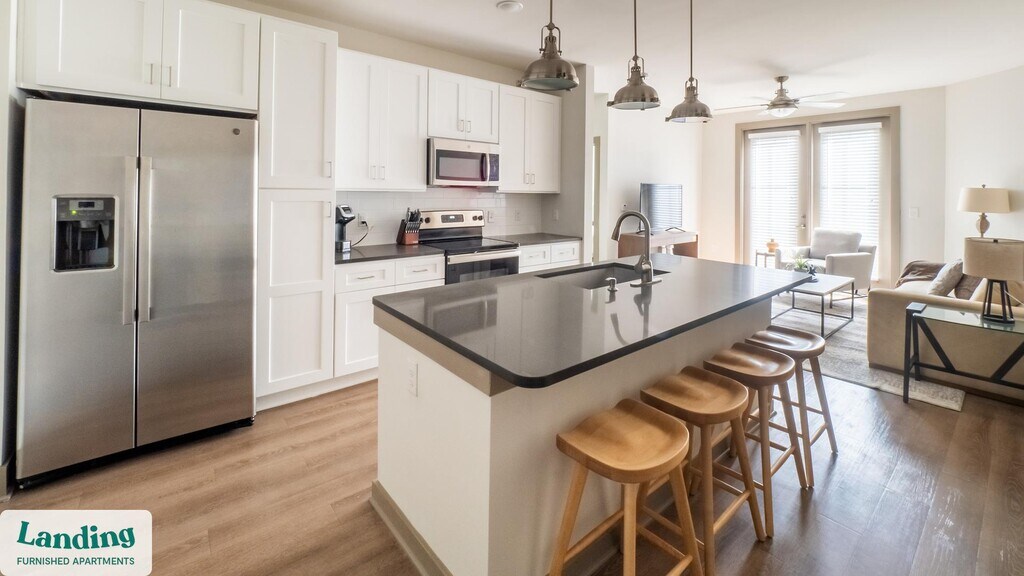 Landing offers flexible lease terms from weeks to months. Please always visit our website or contact us for the latest pricing & availability. Stay longer, save more: 6-Month Minimum base rent: starts at $3389/mo 12-Month Minimum base rent: starts at $2994/mo Landing offers flexible leases across a network of over 35,000 fully-furnished apartments throughout 375+ cities so you can rent on your terms, practically anywhere, and avoid the hassle of paying deposits or application fees. Visit to learn about all the benefits of a Landing membership, see our competitive up-to-date pricing, explore available apartments, take virtual tours, and make reservations online without jumping through traditional rental hoops. Landing's apartments at Avalon at James Island are designed for comfortable, easy living, with the ability to stay as long as you like. Experience living with Landing Every apartment is outfitted with all the modern essentials including: custom-designed furnishings, a fully-equipped kitchen with deluxe stainless steel appliances, a gourmet coffee maker, premium linens, Smart TVs, and incredibly fast, reliable internet for working from home. When you live with Landing, you'll enjoy a hassle-free experience with the added benefit of 24/7 access to our dedicated member experience team. Some of the nitty-gritty: a background check and proof of income are required; we're completely smoke-free; bundled utility packages and pricing vary based on length of stay; pet-friendly options available; listed price reflects a 12-month minimum stay.
