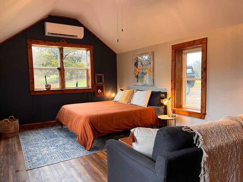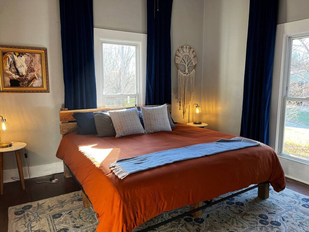 Charming farmhouse nestled on Jemerson Creek Rd in Hartsburg, MO. This idyllic property offers rustic charm with modern amenities. Spacious interiors and picturesque views create a warm and inviting atmosphere. Enjoy the tranquility of country living while being conveniently located. A perfect blend of comfort and character awaits in this farmhouse retreat. Step into a thoughtfully designed interior that seamlessly combines classic farmhouse charm with contemporary amenities. The spacious living areas are adorned with natural light, creating a warm and inviting atmosphere. The kitchen boasts modern appliances and ample counter space, making it a delightful space for culinary enthusiasts. With multiple bedrooms, the farmhouse provides comfortable accommodation for family and guests. The outdoor space is a highlight, featuring 170 acres with miles of trails and a picturesque setting. Enjoy relaxing moments on the front porch or hosting gatherings in the backyard. We have a small swimming pond nearby with a little beach. As it is fed by both rain and a little spring, the water level depends on how much rain we've gotten. You can also swim in the nearby beautiful Hart Creek to cool down or rinse off. We provide towels. Located adjacent to the 600+ acre Hart Creek Conservation area, this farmhouse is a haven for nature lovers and those seeking a slower pace of life. The property's proximity to local amenities and attractions adds convenience to its idyllic setting. Whether you're looking for a place to gather family and friends or a quiet weekend getaway, this 1906 Farmhouse is the perfect place. The Farmhouse is about a mile from Hartsburg where guests can enjoy The Hitching Post, a cherished local bar, or The Burg, a restaurant and live music venue open Thursday through Saturday, and about 5 miles from Ashland, home of the Dandy Lion Internet cafe, restaurant and coffee shop, Moser’s Grocery, and several great restaurants. Guests have keyless access to the entire Farmhouse. There are an additional two rental cabins situated on the 170-acre property, so Farmhouse guests may encounter cabin guests during hikes on the property. During the winter months, when leaves have dropped, one of the other cabins is visible from the back deck. No smoking and absolutely no parties. Pets are allowed with a $50 pet fee and agreement to the pet policy. Unauthorized pets will incur a $200 fee. Unauthorized late checkouts will be billed at $25 per hour in hourly increments. Be respectful of our housekeeper's time and be sure to checkout on time. [SI]