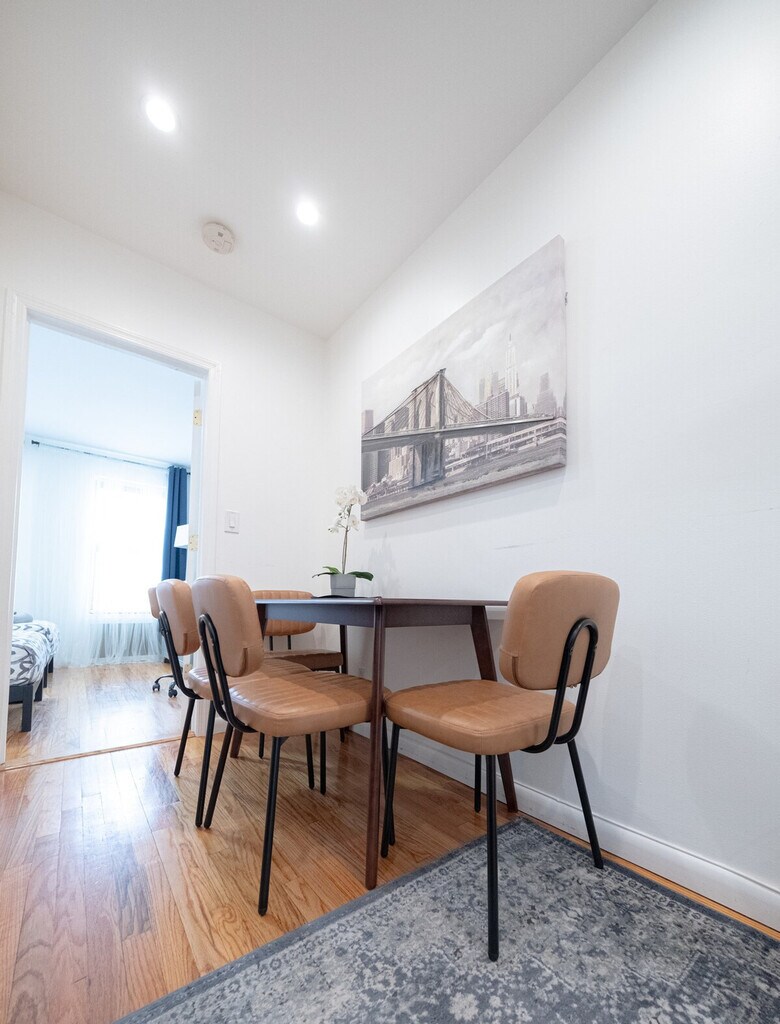 Feel at home in this charming, newly renovated and fully furnished 2-bedroom apartment located on the third floor, just two flights of stairs up. This spacious apartment is perfect for a family of four, offering a comfortable living room, dining room, and a fully equipped kitchen, ensuring a delightful stay in New York. The apartment features a queen-size bed in the first bedroom and two single beds in the second bedroom, which can be combined to form a full bed. The living room includes a pull-out sofa, providing additional sleeping space. The kitchen is fully equipped with a large refrigerator, stovetop, oven, coffee maker, toaster, microwave, and dishwasher, along with all necessary utensils and cutlery. Bed linens, towels, an iron, and a hairdryer are also provided for your convenience. Street parking is available for free, but be mindful of alternate side parking rules to avoid tickets. Nestled in the vibrant neighborhood of El Barrio, this apartment offers a daily mix of cultural, historical, and artistic experiences. Just a couple of blocks away from the 6 and Q trains and Central Park, the location provides superb subway accessibility. Nearby attractions include the Museum of the City of New York, Guggenheim, Metropolitan Museum, and various parks and gardens. Smoking inside or outside the apartment will result in a $500 fine. Pets are not allowed, and a fine of $500 will be charged if this rule is violated. The apartment is not child-proof. Quiet hours are from 10 pm to 7 am. Check-out time is 11:00 AM, and excessive cleaning charges may apply if the apartment is not left in good condition. Utilities, including Wi-Fi, cable/satellite, heat, hot water, and gas/electricity, are included. The apartment is available for a minimum of 30-night rentals only. Luggage storage is not available on-site, but you can use external services like for storage before check-in or after check-out. Kindly note that a $350 refundable security deposit is required and will be collected directly by the partner after your booking is confirmed. The security deposit will be handled through direct communication with the partner and is not processed automatically.