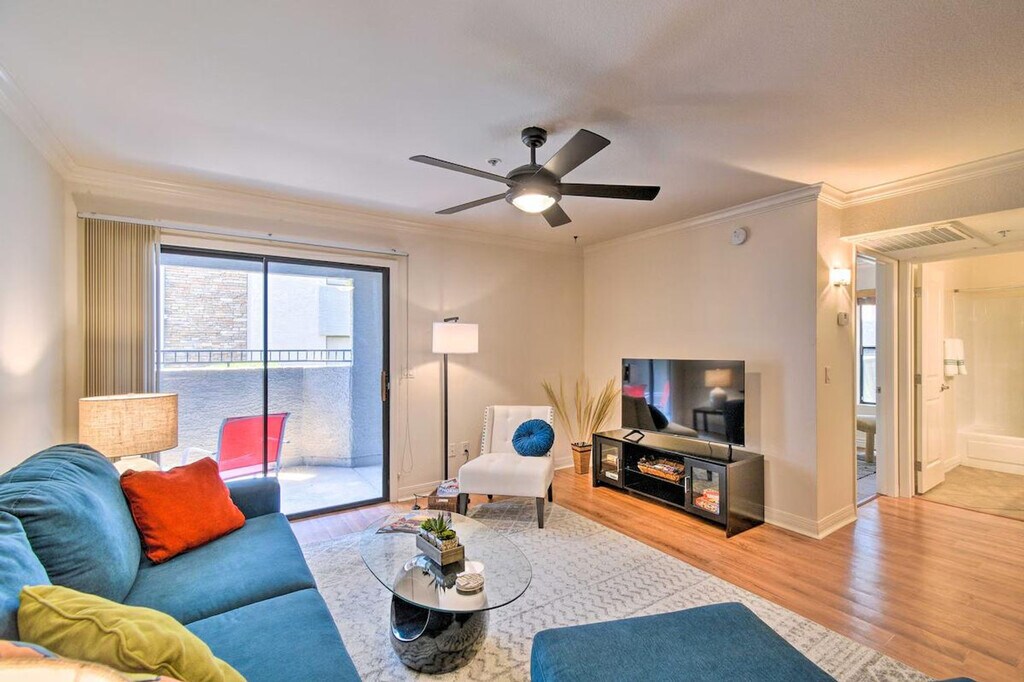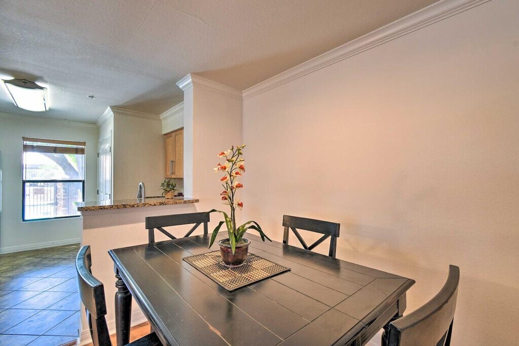 Feel at home in this fully equipped 2-bedroom, 2-bath vacation rental, perfect for a relaxing getaway. This ground-floor unit offers step-free access. The kitchen is equipped with a dishwasher, stove/oven, cooking basics, Keurig coffee maker, toaster, and blender. Enjoy indoor living with smart TVs, a dining table, and private bed/baths on opposite sides of the unit. Additional amenities include complimentary toiletries, towels, linens, a hair dryer, air conditioning, ceiling fans, keyless entry, free Wi-Fi (250 Mbps), and a washer and dryer. Community lot parking is available for 1 vehicle. The location is within walking distance of Whole Foods, The Biltmore Fashion Park, along with many shops and restaurants. For adventurous days, drive to Piestewa Peak. Smoking, pets, events, parties, and large gatherings are not allowed. Guests must be at least 25 years old to book. [SI]