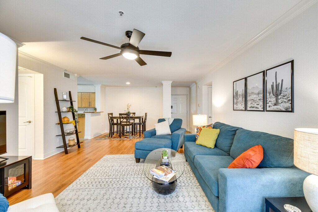 The advertised rate of $2,355/month is the lowest available price, based on a 30 day(s) stay with a move-in date of July 9, 2026. Rates vary depending on the duration of stay, season, and other parameters. For exact pricing and additional pricing components, please visit our website and enter your desired move-in and move-out dates. The rate is applicable when billed upfront; it can be higher if billed in multiple payments. Feel at home in this fully equipped 2-bedroom, 2-bath vacation rental, perfect for a relaxing getaway. This ground-floor unit offers step-free access. The kitchen is equipped with a dishwasher, stove/oven, cooking basics, Keurig coffee maker, toaster, and blender. Enjoy indoor living with smart TVs, a dining table, and private bed/baths on opposite sides of the unit. Additional amenities include complimentary toiletries, towels, linens, a hair dryer, air conditioning, ceiling fans, keyless entry, free Wi-Fi (250 Mbps), and a washer and dryer. Community lot parking is available for 1 vehicle. The location is within walking distance of Whole Foods, The Biltmore Fashion Park, along with many shops and restaurants. For adventurous days, drive to Piestewa Peak. Smoking, pets, events, parties, and large gatherings are not allowed. Guests must be at least 25 years old to book. [SI]