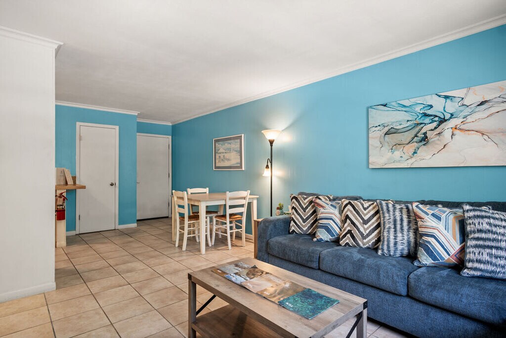 The advertised rate of $2,604/month is the lowest available price, based on a 1 month(s) stay with a move-in date of April 22, 2026. Rates vary depending on the duration of stay, season, and other parameters. For exact pricing and additional pricing components, please visit our website and enter your desired move-in and move-out dates. The rate is applicable when billed upfront; it can be higher if billed in multiple payments. Feel at home in this cozy 2-bedroom apartment in Port Aransas. Located in a prime location on the second floor, this apartment is the perfect getaway for up to 4 guests. This apartment features a fully equipped kitchen with a full-size refrigerator, stove, oven, microwave, coffee maker, blender, cookware, and utensils. The living room includes a TV with cable and comfortable seating in an open layout connecting to the dining area. Additional amenities include Wi-Fi and a community barbecue area and fish cleaning station. Parking is available for up to two vehicles, including golf carts. Boat parking is available for smaller bay boats; please notify the office when booking. This apartment is a 2-minute drive to the beach and a 5-minute drive to local dining and shopping. Nearby attractions include Chapel on the Dunes, Port Aransas Beach, Port Aransas Community Theatre, and Roberts Point Park. Nearby restaurants include Fins Grill & Icehouse, Black Marlin Bar & Grill, Venetian Hot Plate, Virginia's on the Bay, and Moby Dick's Restaurant & Saloon. Quiet hours are between 10 PM and 7 AM. No pets are allowed. No parties are allowed; violations may result in immediate termination of the stay. An exterior camera is installed solely to monitor the cleaning team for quality and security purposes. Port Aransas is constantly evolving with ongoing construction, building projects, and community improvements. Island life comes with seasonal pests like mosquitoes, and the properties receive professional pest control treatments every month. Cable and Wi-Fi connectivity might be unpredictable. Check-in is at 4 PM, and check-out is at 10 AM. [SI]