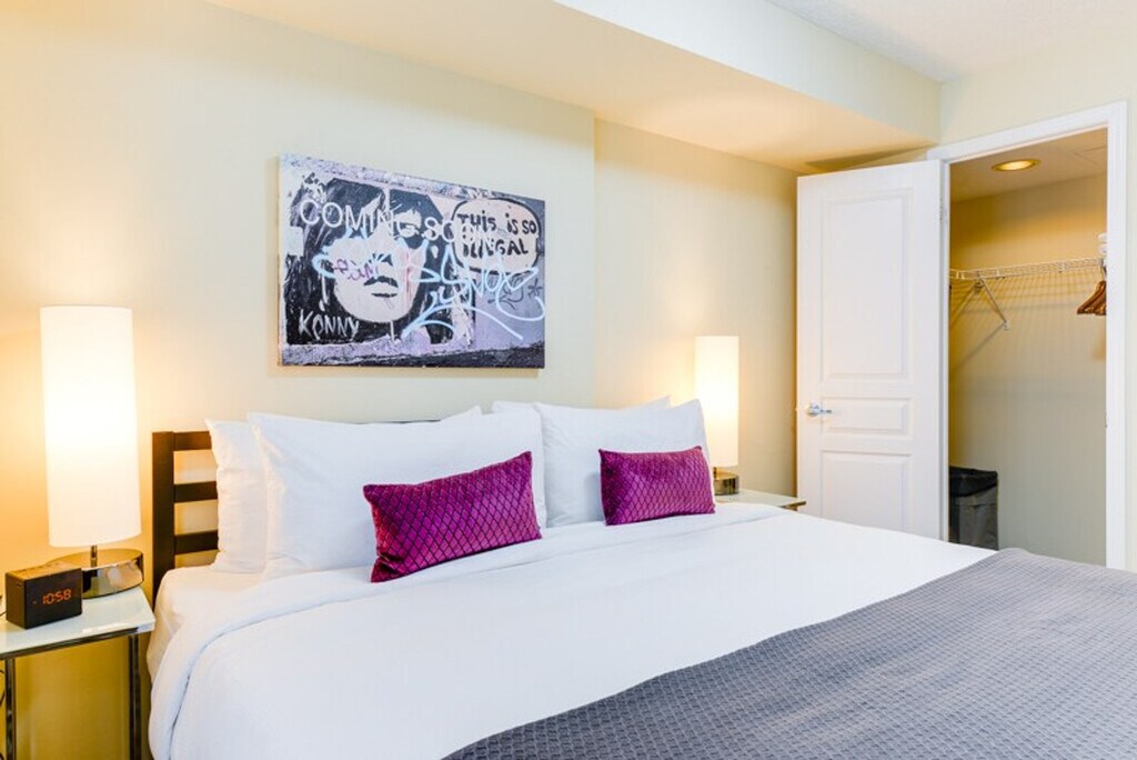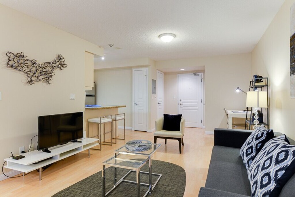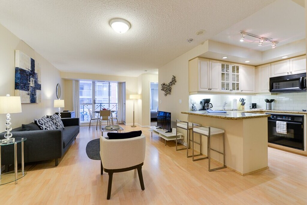 Feel at home in this stylishly furnished 1-bedroom, 1-bathroom condominium located in the heart of the entertainment and financial districts. With the subway just steps from your door, this apartment offers unparalleled convenience for exploring the city. The minimum stay is 30 days, making it perfect for long-term visitors. This 1-bedroom, 1-bathroom condominium is thoughtfully designed with style and function in mind. Enjoy easy walking distance to all city highlights, with the subway conveniently located just across the street. The apartment features a 24/7 staffed security desk for your peace of mind. Parking is not included. Please reach out for availability and rates. Interim housekeeping services are also not included, but can be arranged upon request for an additional fee. A starter kit with essentials like soap, shampoo, dishwasher and laundry pods, toilet paper, and paper towels is provided to help you settle in, but replenishment is required as needed. Situated in the downtown city center, this apartment provides easy access to a plethora of restaurants, theaters, shopping, and public transit options. The major highway, Gardiner Expressway, is just a 5-minute drive away, ensuring seamless connectivity to the rest of the city. The apartment enforces a strict no-parties and no-smoking policy. Violations may result in penalties. A 24/7 staffed security desk is available for your convenience and safety. [SI]