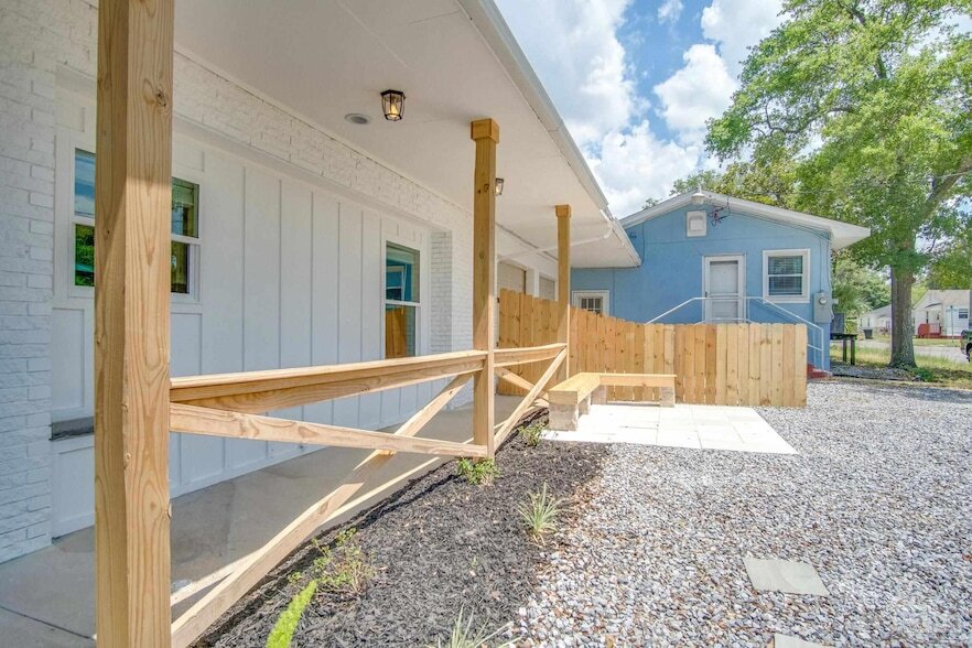 Completely remodeled and modern 2-bedroom, 2-bath attached home just minutes from downtown Pensacola. This beautifully updated residence features luxury vinyl plank flooring throughout, fresh interior paint, and stylish modern finishes from top to bottom. The front entry opens to a spacious dining area that flows seamlessly into the living room, creating a bright and open layout ideal for everyday living and entertaining. The kitchen has been fully updated with new cabinetry, granite countertops, a contemporary backsplash, stainless steel appliances, and a deep stainless steel sink. A hallway with sliding barn doors leads to the laundry area and a full guest bathroom featuring an updated vanity and tub/shower combination. The primary bedroom includes a private bathroom with a double-sink vanity and a tub/shower insert. The home also includes an attached garage for added convenience and storage. Outside, enjoy a full-length covered porch overlooking a beautiful park directly across the street, complete with a playground, dog park, basketball court, and soccer fields. Pets are allowed with owner approval and a $250 non-refundable pet fee per pet; aggressive breeds are not allowed. Residents are required to have renter liability insurance, which can be added for $11.95/month, or may opt into the Resident Benefits Package (RBP) for $45/month, which includes renter liability insurance, HVAC air filter delivery, and on-demand pest control. Home is currently occupied please do not disturb residents. Available for move-in 6/15.