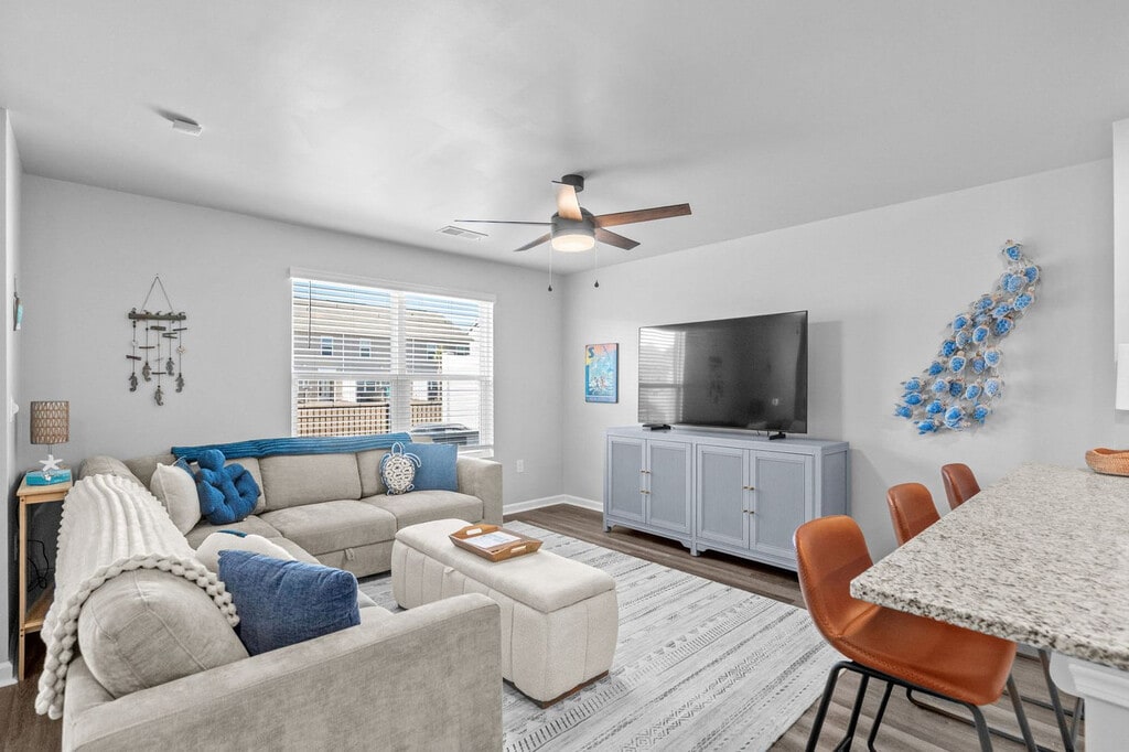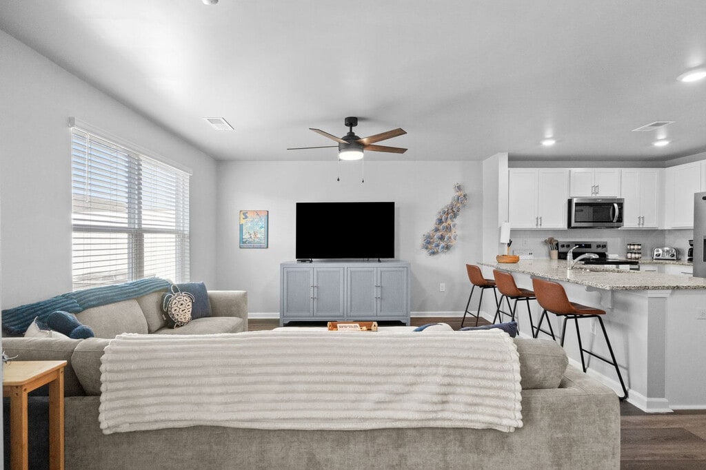 The advertised rate of $4,806/month is the lowest available price, based on a 1 month(s) stay with a move-in date of September 13, 2026. Rates vary depending on the duration of stay, season, and other parameters. For exact pricing and additional pricing components, please visit our website and enter your desired move-in and move-out dates. The rate is applicable when billed upfront; it can be higher if billed in multiple payments. Experience all that Surfside Beach has to offer and feel at home in this spacious 3-bedroom home. With 1500 square feet, this property offers a comfortable and modern living space. This brand-new home features a modern, fully stocked kitchen, a living room with a large sectional sofa and a 65" Roku TV, and comfortable dining for up to 7. The converted garage serves as a game room, complete with a full-sized ping pong table, dart board, and putting green. Upstairs, the primary suite includes an en-suite private bath with double vanities, a wardrobe, and a full-sized dresser. The second bedroom has a large closet, and there is a shared hallway bath with a tub/shower combo. An included electric-powered golf cart provides easy access to downtown and the beach, with free golf cart parking available at specific beach accesses. Uber is also available in the area for trips to Broadway at the Beach or other Myrtle Beach attractions. Located in The Cove at Glenns Bay, this home offers a serene coastal lifestyle in Surfside Beach, SC. Delicious restaurants and a grocery store are right across the street, and downtown Surfside and the Surfside Pier are a short golf cart ride away. The home is also just 15 minutes from the Myrtle Beach International Airport. Guests must be at least 25 years old to book. This is a non-smoking property, and pets are not allowed. Quiet hours are between 11:00 PM and 7:00 AM. Check-in time is 4:00 PM, and check-out is 10:00 AM. The maximum occupancy is 8 people, including infants and children. There is an additional guest fee after the 7th guest. [SI]