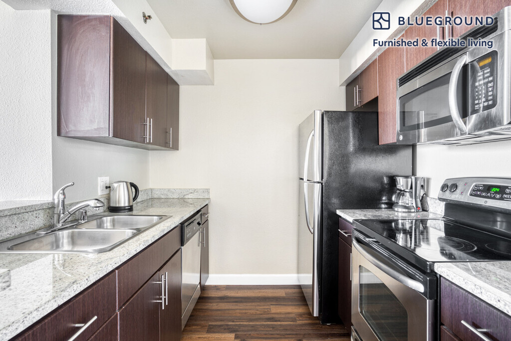 Feel at home wherever you choose to live with Blueground. You’ll love this beautiful Cupertino furnished two bedroom apartment with its modern decor, fully equipped kitchen, and pretty living room. Ideally located, you’re close to all the best that Cupertino has to offer! (ID #SFO726) The advertised rate of $5,050/month is the lowest available price, based on a 12 month(s) stay with a move-in date of April 26, 2026. Rates vary depending on the duration of stay, season, and other parameters. For exact pricing and additional pricing components, please visit our website and enter your desired move-in and move-out dates. The rate is applicable when billed upfront; it can be higher if billed in multiple payments. Brokers are welcome to reach out. Were you looking for an unfurnished lease? Try Blueground instead and upgrade from unfurnished to furnished living: - Furnished at rates comparable to unfurnished - No setup or furniture costs - save thousands - Move-in ready - save time, just bring your suitcase Designed with you in mind As with any Blueground apartment, you’ll find a thoughtfully designed space complete with beautiful furniture and a fully equipped kitchen in this two bedroom property. And, thanks to our superior quality mattresses, luxury linens, and towels, you can relax knowing you’ll always feel comfortably at home. When you’re ready for some fun, you can take in the Cupertino vibes or bring the entertainment to you with the premium wireless speaker or smart TV. This apartment also offers in-apartment laundry. Sleeping arrangements King Bed, 70.8in/180cm King Bed, 70.8in/180cm Amenities Building amenities unique to this two bedroom apartment include an on-site: - BBQ Area - Dryer - Elevator - Game room - Swimming pool - Washing machine - Parking - Pets allowed Arrival and ongoing support The entire apartment is yours to enjoy! Throughout your stay, you’ll have access to our Client Experience team through the Blueground App. You can schedule additional cleanings, submit maintenance requests, and view our neighborhood recommendations with just a few taps. We’ll share all details upon confirmation of your stay. Ideally Located This furnished home is located in the city of Cupertino, where the Apple headquarters is located. Many come to visit the Apple Park Visitor Center which has an Apple Store, Cafe Macs coffee bar and an observation deck. Calling Cupertino home means being close to The Picchetti Winery, a local winery and the De Anza College Fujitsu Planetarium that offers astronomy shows and laser displays. For recreation, residents of Cupertino spend time at Rancho San Antonio Open Space Preserve. It has over 24 miles of hiking trails, an education center and working farm. Other things to note Building amenities may have an extra cost. This Blueground apartment has flexible lease options, allowing you to book it for one month, a year, or more. Pets are welcome, though weight limits and breed restrictions apply and may incur fees. Parking is offered based on availability and is subject to a fee. We take great pride in ensuring every photo displayed is shot in our own units with our actual furnishings. That said, we regularly refresh our decor and furniture arrangement, which may differ from what’s pictured. [SI]