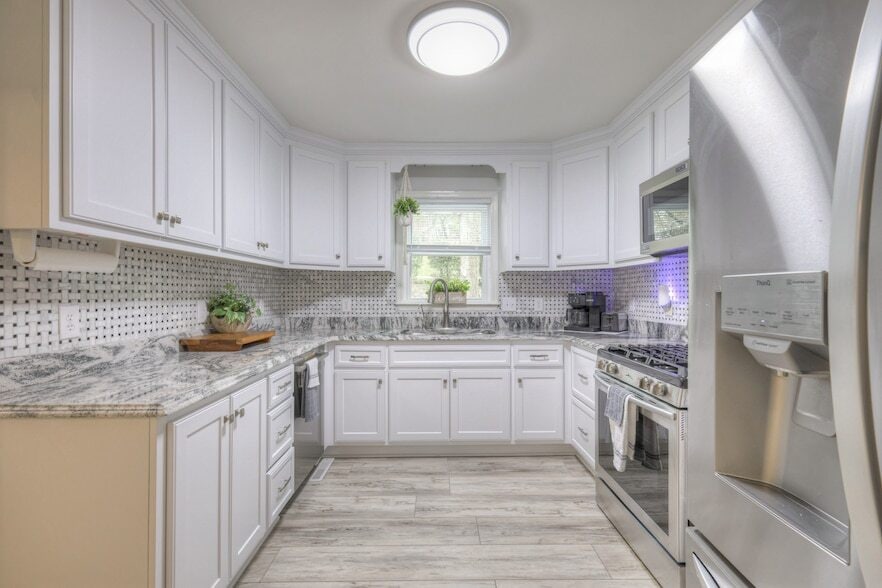 Great neighborhood just outside the city limits in the Stoneybrook Estates with a beautiful new golf course. The house was remodeled in October of 2021. All 4 bedrooms are on the main level, two have a large jack-and-Jill bathroom and large walk-in closets. High-end vinyl plank flooring, custom cabinets and vanities, built-in closets, nice granite countertops, and a tiled backsplash in the kitchen with nice appliances. Whole-house water filter system. Large Living room with a gas log fireplace, a vaulted ceiling, and 2 skylights. A large covered deck and a large open deck overlook nice landscaping and mature trees. The main bedroom suite has a large bathroom with a vaulted ceiling and skylight. Nice custom walk-in shower and double vanity with a makeup table. The utility room has lots of cabinets and shelving for laundry baskets, as well as a stainless steel utility sink. Dryers can be hooked up to gas or electricity. Bonus room with full bath, and an office. 2772 sq ft Basement. Furniture negotiable.