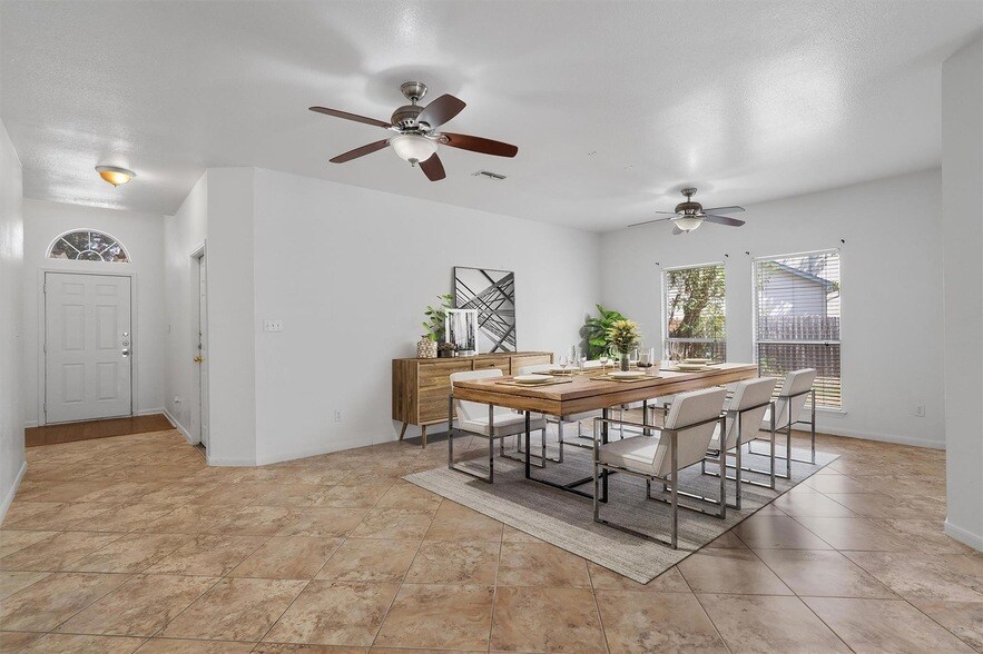 Practical and conveniently located, this move-in ready home is tucked away in a quiet cul-de-sac in the Clarks Crossing neighborhood of Hutto, offering comfort, functionality, and the bonus of no HOA! Recent updates provide peace of mind, including a new HVAC system installed in 2021 with a transferable service contract, and a foundation repair in 2025 with a transferable warranty. The inviting curb appeal is enhanced by a mature front yard tree, while the 2-car garage is equipped with a 240V outlet, perfect for EV charging. Inside, an open floor plan welcomes you with expansive windows that flood the home with natural light. The spacious living area is anchored by a cozy brick fireplace, while the kitchen offers laminate countertops, timeless white cabinetry with pull-out drawers, stainless steel appliances, a pantry, and a breakfast nook framed by a charming bay window. A nearby dining area can also serve as a versatile flex space. The primary suite is a retreat, complete with its own bay window and an ensuite bath featuring dual vanities, a soaking tub, a separate shower, and a walk-in closet, Two additional bedrooms, each with its own closet, provide flexibility for guests, office space, or hobbies, sharing a well-appointed full bath. Outdoors, the large fenced backyard is perfect for entertaining or relaxing, with a patio and a storage shed for added convenience. This prime location offers walking distance to the elementary school, along with easy access to major highways including US 79, TX 130, I-35, and State Hwy 95. Nearby shopping, dining, and recreational options make everyday living convenient and enjoyable.