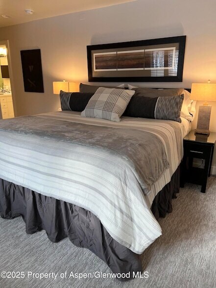 Top-floor, south facing, 2 bedroom, 2 bathroom South Point condominium, offering Aspen Mountain views and a prime core location. Featuring a gourmet kitchen with a Wolf range, Miele dishwasher, oversized refrigerator and custom cabinetry. The elegant living spaces include skylights, a private balcony, and both gas and electric fireplaces for the perfect mountain ambiance. The spa-like bathrooms boast an oversized shower with multiple shower heads, a deep soaking tub, and premium fixtures, including ceiling speakers in the primary bath. Large flat-screen TVs in every room, AC, Wi-Fi and cable ensure modern comfort. South Point amenities include underground garage parking, a personal ski locker and bike storage. For ski enthusiasts, this condominium is ski-in and just a short distance to the gondola, with a skier shuttle nearby. The free Downtowner car service offers door-to-door pickup for dining and errands, adding to the convenience of this prime location. $15,000/mo, including utilities, for a 13 month lease starting May 1st, 2026.