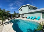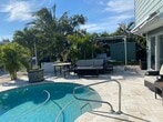 Bring your boat, there is 50 feet of dockage available in this furnished 2/2 house rental. No fixed bridges. Marina is close by. Close to downtown and the beaches, this home is two stories. Newer flooring and updated kitchen. The home also has an updated diamond bright heated pool with saltwater system. Convenient to everything and excellent where you can easily turn your vessel. Mirror polished floors on ground level and three large TV's. High style furniture with living room sofa bed. Bedrooms equipped with writing desks. Metal Roof. Great opportunity.