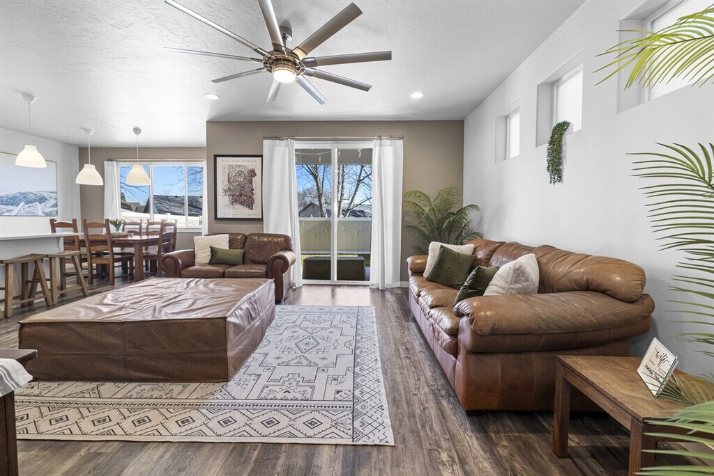 Stay in this modern, two-story home in Nampa, featuring a queen-size bed in each room. Enjoy the large patio area with lounge seats and a good-sized backyard, perfect for spending time with friends and family. The home is equipped with smart TVs in every room and offers a large desk in the master bedroom and a small desk in the second room, ideal for individuals working remotely. The fully stocked and equipped kitchen and in-house washer and dryer add to the convenience of this home. Experience easy self check-in and enjoy being just 10 minutes down the road from local attractions. This home is professionally cleaned and sanitized between each guest, ensuring a welcoming and safe environment. The master bedroom features a large walk-in closet and a private bathroom, while the entire space is professionally decorated with unique furnishings and a warm ambiance. Driveway and garage parking are available, although parking areas are quite small, which may be challenging for larger vehicles. Driveway and garage parking are available, although parking areas are quite small, which may be challenging for larger vehicles. Located in Nampa, this home offers easy access to local attractions, just 10 minutes down the road. Enjoy the convenience of being close to everything you need while having a private fenced yard for relaxation. This property is a good-sized single-family home with three bedrooms, a good-sized living room, large patio, and backyard. Enjoy easy self-check-in via a secure door keypad. The home is remote work-friendly with fast Wi-Fi, a large desk in the master bedroom, and a small desk in the second room, making it ideal for working remotely. [SI]