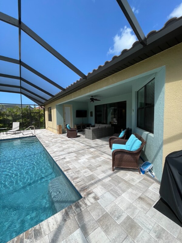 Property Id: 1143781 Beautiful pool home in the RESORT STYLE COMMUNITY of Gran Paradiso. This FURNISHED HOME is available on May 01, 2026. There are 4 bedrooms, 2 bathrooms, with 2 car garage spaces and plenty of parking. There is a sunny screened in pool lanai that overlooks a preserve view. The pool is heated. A large kitchen with stainless steel appliances, countertop seating and eat-in dinnette and formal dining room. The living room has an electric firepalce and smart TV. The primary bedroom has a walk-in closets and a bathroom. There are 2 guest bedrooms, and a den. The 2nd bathroom has a tub/shower. There is a laundry room with a washer and dryer. The one-car garage also has a driveway for additional parking. Located in the area only "A" RATED SCHOOL DISTRICT. Gated and deed-restricted community, with countless amenities and activities,community pool, spa, clubhouse, impressive gym, aerobics, sauna, steam room, tennis, pickle ball, playground, bike, and golf cart paths,