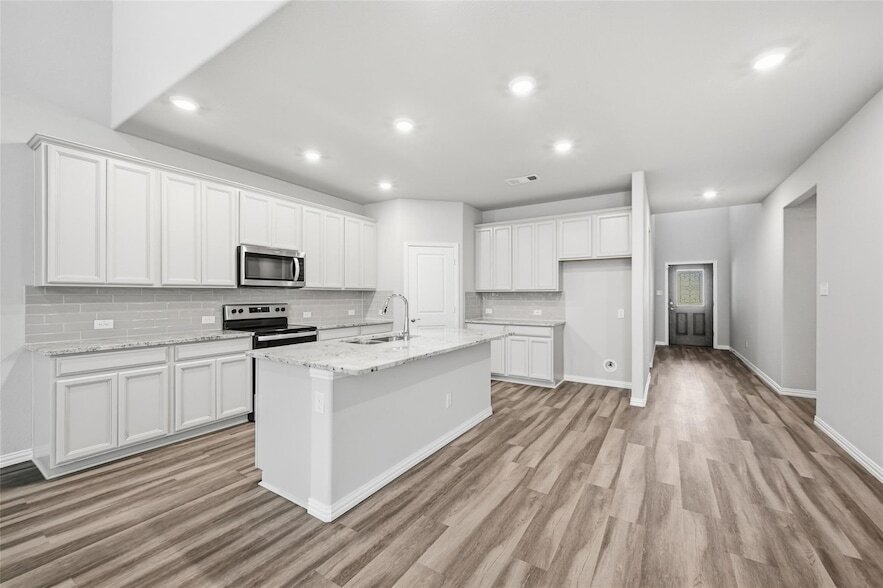 Welcome to this spacious 5-bedroom, 3-bath home in The Quarry at Stoneridge, offering over 3,000 square feet of living space and a highly functional layout ideal for families, remote workers, or multigenerational living. Downstairs features an open living area with luxury vinyl flooring, excellent natural light, and a large kitchen with granite countertops, stainless steel appliances, and an oversized dining space. The first floor includes the primary suite plus a secondary bedroom, providing flexibility for guests or an office. Upstairs you'll find three additional bedrooms and a huge game room, creating a perfect separate living zone. Outside, enjoy a covered back patio and an easy-maintenance yard. The home sits in a quiet part of the neighborhood with convenient access to US-75, making McKinney, Allen, and Plano an easy commute. Community features include walking trails, parks, a playground, and a lake, giving residents a well-rounded outdoor lifestyle. Located in the acclaimed Melissa ISD, this home combines space, comfort, and a fantastic location within one of Melissa's most desirable communities.