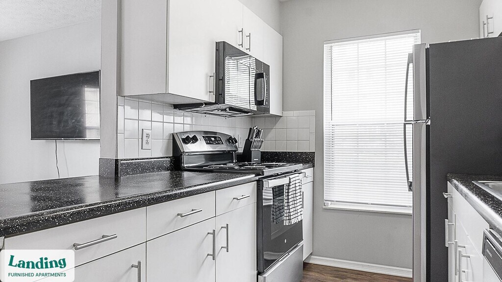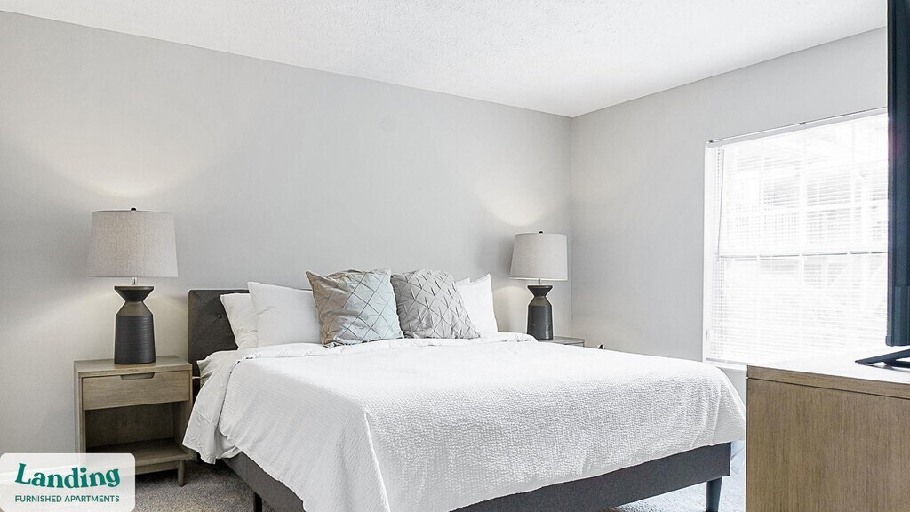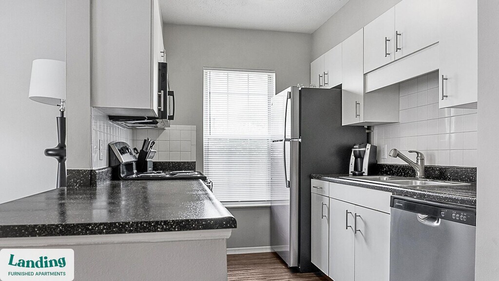 Landing offers flexible lease terms from weeks to months. Please always visit our website or contact us for the latest pricing & availability. Stay longer, save more: 6-Month Minimum base rent: starts at $1464/mo 12-Month Minimum base rent: starts at $1415/mo Landing offers flexible leases across a network of over 35,000 fully-furnished apartments throughout 375+ cities so you can rent on your terms, practically anywhere, and avoid the hassle of paying deposits or application fees. Visit to learn about all the benefits of a Landing membership, see our competitive up-to-date pricing, explore available apartments, take virtual tours, and make reservations online without jumping through traditional rental hoops. Landing's apartments at The Landing are designed for comfortable, easy living, with the ability to stay as long as you like. Experience living with Landing Every apartment is outfitted with all the modern essentials including: custom-designed furnishings, a fully-equipped kitchen with deluxe stainless steel appliances, a gourmet coffee maker, premium linens, Smart TVs, and incredibly fast, reliable internet for working from home. When you live with Landing, you'll enjoy a hassle-free experience with the added benefit of 24/7 access to our dedicated member experience team. Some of the nitty-gritty: a background check and proof of income are required; we're completely smoke-free; bundled utility packages and pricing vary based on length of stay; pet-friendly options available; listed price reflects a 12-month minimum stay.