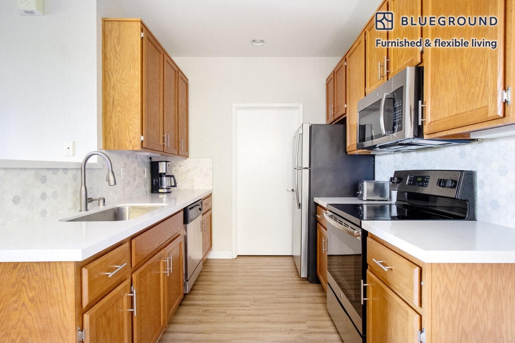 Feel at home wherever you choose to live with Blueground. You’ll love this cozy Sunnyvale West furnished two bedroom apartment with its modern decor, fully equipped kitchen, and comfortable living room. Ideally located, you’re close to all the best that Cupertino has to offer! (ID #SFO572) The advertised rate of $4,180/month is the lowest available price, based on a 12 month(s) stay with a move-in date of February 23, 2026. Rates vary depending on the duration of stay, season, and other parameters. For exact pricing and additional pricing components, please visit our website and enter your desired move-in and move-out dates. The rate is applicable when billed upfront; it can be higher if billed in multiple payments. Brokers are welcome to reach out. Were you looking for an unfurnished lease? Try Blueground instead and upgrade from unfurnished to furnished living: - Furnished at rates comparable to unfurnished - No setup or furniture costs - save thousands - Move-in ready - save time, just bring your suitcase Designed with you in mind As with any Blueground apartment, you’ll find a thoughtfully designed space complete with beautiful furniture and a fully equipped kitchen in this two bedroom property. And, thanks to our superior quality mattresses, luxury linens, and towels, you can relax knowing you’ll always feel comfortably at home. When you’re ready for some fun, you can take in the Cupertino vibes or bring the entertainment to you with the premium wireless speaker or smart TV. This apartment also offers in-apartment laundry. Sleeping arrangements King Bed, 70.8in/180cm King Bed, 70.8in/180cm Amenities Building amenities unique to this two bedroom apartment include an on-site: - BBQ Area - Dryer - Swimming pool - Washing machine - Lounge - Parking Arrival and ongoing support The entire apartment is yours to enjoy! Throughout your stay, you’ll have access to our Client Experience team through the Blueground App. You can schedule additional cleanings, submit maintenance requests, and view our neighborhood recommendations with just a few taps. We’ll share all details upon confirmation of your stay. Other things to note Building amenities may have an extra cost. This Blueground apartment has flexible lease options, allowing you to book it for one month, a year, or more. Parking is offered based on availability and is subject to a fee. Please keep in mind that this is a walk up building. We take great pride in ensuring every photo displayed is shot in our own units with our actual furnishings. That said, we regularly refresh our decor and furniture arrangement, which may differ from what’s pictured. [SI]