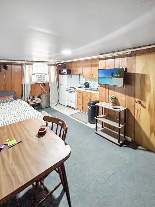 Property Id: 1264925 Book your stay in this cozy lower garden level 1 bedroom/studio furnished apartment downtown Hallock, Minnesota. Conveniently located a block from the coffee shop, wine bar, boutique, local gym, brewery, library, grocery store, gas station, post office, dollar store, and more. More affordable than a hotel with the privacy/vibe of a residential building with quiet hours. It features high speed wifi, TV with Netflix-Hulu-Max, dining table, dresser, clothing organizer, twin bed with linens, curtains, full kitchen (smaller fridge than pictured), 1 off-street parking spot, and a small bathroom with shower. Coin-op laundry is in the building. All utilities are included including Wifi. No pets, smoking, or more than 1 person. No deposits. Pricing: 3+ months $595/month with $100 move-in fee (reach out for our monthly rates) *Pictures don't show all updates: some new paint, flooring, TV, and Console table* Check out our website: