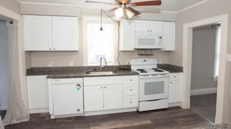 Property Id: 1501507 Nearly renovated two bedroom one bathroom bungalow with detached two car garage and fenced in yard. Close to downtown, within walking distance to parks and dining, etc. No smoking. New renovated kitchen with granite countertops, all appliances, including washer dryer are included new carpet new paint updated bathroom. pets are accepted upon approval with additional pet fee available for move-in today!