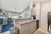 Now available in the desirable Hunters Glen community in Dunedin, this beautifully remodeled and fully furnished second-floor end-unit condo offers 955 square feet of light and bright living space featuring 2 bedrooms, 2 bathrooms, vaulted cathedral ceilings, an open-concept layout, a cozy fireplace, spacious walk-in closets, and a private laundry closet. The updated interior includes stylish furnishings throughout, plus a screened and covered patio with peaceful views of the landscaped grounds and an additional exterior storage closet for convenience. Rent includes water, sewer, lawn maintenance, basic cable, and pool service. Located just steps from the community pool, this unit also comes with assigned parking and ample guest parking. Enjoy a prime location near Downtown Dunedin with easy access to shopping, dining, parks, medical facilities, beaches, and airports move right in and enjoy the Florida lifestyle!