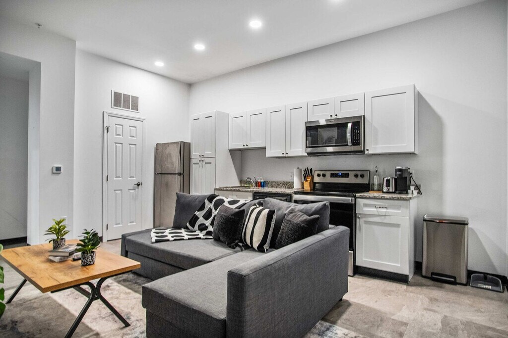 Welcome to a charming condo in Downtown Pittsburgh, perfectly located for easy access to the city's top attractions. Ideal for both leisure and business travelers, this condo offers seamless check-in, fast Wi-Fi, and thoughtful touches with a tech-first approach to ensure you feel at home while on the go. Please note that the building elevator is currently out of service, and this unit is on the 5th floor, which is up 4 flights of stairs. This spacious 1-bedroom apartment features inviting living areas, a fully equipped kitchen, and a bathroom complete with toiletries. Throughout your stay, enjoy access to the building's fitness center with strength and cardio rooms. Additional amenities include an in-unit washer and dryer, a smart TV with streaming apps installed, a TV in the living room, and complimentary coffee. A pet fee may be charged for guests traveling with an emotional support animal. Optional services such as mid-stay cleanings and early check-in/late checkout are available for an additional fee. Situated in a great central location in downtown Pittsburgh, the condo is just 1.5 blocks from the Convention Center and walkable to all major sporting venues. A car isn’t necessary to explore the area, with restaurants, entertainment, and activities within walking distance. All properties are smoke-free environments. Smoking of any kind is not permitted within or outside of the suites, including balconies, patios, or common and parking areas. Any sign of smoking is a violation of the stay agreement, which may result in immediate termination and recovery fees beginning at $500. Check-in is at 4 PM, and check-out is at 11 AM, with a $75 per hour late fee. There is a $200 penalty for removing smoke detectors and a $200 penalty for lost key fobs. No outside guests are allowed without permission. Guests must observe quiet hours from 9 PM to 8 AM each day, and the home is monitored with decibel sensors for compliance with this noise policy. Long-term guests will be subject to a background search and credit check. No weapons or drugs are allowed, and police will be called for violations. The unit is equipped with fast Wi-Fi and a smart lock, allowing for hassle-free and secure entry with a personalized access code. [SI]