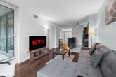 The advertised rate of C$7,773/month is the lowest available price, based on a 1 month(s) stay with a move-in date of September 28, 2026. Rates vary depending on the duration of stay, season, and other parameters. For exact pricing and additional pricing components, please visit our website and enter your desired move-in and move-out dates. The rate is applicable when billed upfront; it can be higher if billed in multiple payments. Feel at home in this comfortably furnished apartment, located just minutes away from major attractions. This 650 ft² / 60m² apartment is perfect for international visitors, families, and business travelers. This apartment features high-speed fiber internet and Wi-Fi, a smart HD TV, a pool and hot tub, a gym and sauna, and a private balcony with outdoor seating (available seasonally only). It also includes full sets of hotel-quality bedding and fresh towels, a fully equipped kitchen with appliances including a fridge and stove, and an in-suite washer and dryer. Free parking is available for one car. Located just 7 minutes from the CN Tower, Metro Toronto Convention Centre, and Rogers Centre, this apartment boasts an excellent walk score of 90 and a transit score of 91. Smoking is not allowed anywhere on the premises, and failure to comply may result in a penalty of up to $1000. No more than the stated number of guests in the reservation may stay overnight, unless agreed otherwise. Failure to report the accurate number of overnight guests may result in an immediate cancellation of your stay. Pets, parties, and illegal drugs of any kind are not allowed anywhere on the property (inside or outside). Late checkout beyond the scheduled check-out time will incur fees of $50 per hour, unless a different time has been agreed otherwise. [SI]