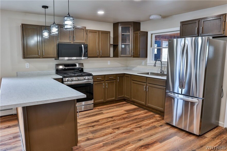 Spacious 2-bedroom, 1-bath rear apartment located in the heart of the Village of Angola. Offered at $1,350/month, this well-maintained unit provides added privacy with its rear location while still enjoying all the benefits of village living. Situated directly across from a park and just a short walk to local restaurants, shops, and everyday amenities, this rental combines comfort, convenience, and location. Perfect for tenants seeking a larger layout in a quiet setting with easy access to everything the village has to offer. Sq Ft is based on public record for the whole property and not the square footage of the Unit.Unit is appx. 900 sq ft