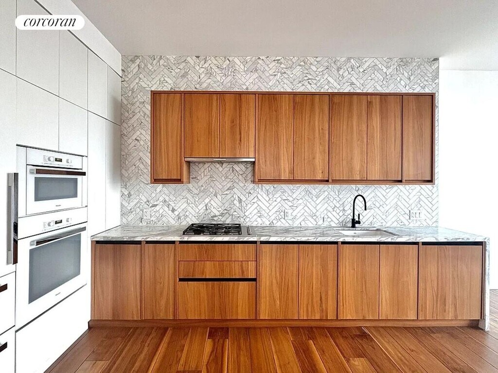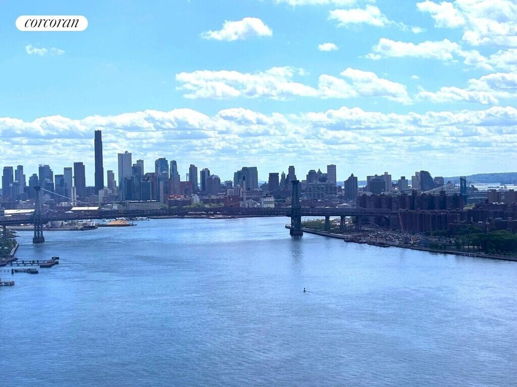 Welcome to apartment 36D at The Greenpoint, a luxurious corner 2-bedroom, 2-bath home with dramatic views from the 36th floor, including an expansive East- and South-facing exposure toward the East River and Brooklyn skylines. This residence features a ceiling height of 9-10 feet with floor to ceiling windows and a corner primary bedroom. The wide plank walnut floors highlight a palate of natural materials. The seamless kitchen is outfitted with a honed Statuario marble countertop and backsplash alongside with premium Miele appliances, including a gas cook-top and double wall ovens. The apartment includes a Bosch washer and dryer and high-quality window treatments. There are two marble bathrooms, one with a stall shower outfitted with walnut vanities and matte black metal and polished chrome fixtures. The primary en suite bathroom has radiant heated floors. Apartment owner's pet policy is case-by-case. This luxury waterfront condominium features an extraordinary array of 30,000 square feet of amenities including a 24-hour attended lobby, porte cochere, fitness center, yoga room, co-working lounge with waterfront views, game room with table tennis and billiards, basketball court, playroom, outdoor patio with grills, and a riverfront roof terrace with chaise lounges. There is a new playground adjacent to the building as well as a daycare for dogs and grooming, boarding and walking. NYC Ferry is just outside your door offering convenient and direct access to Midtown Manhattan, Wall Street, Williamsburg, Long Island City and more. The G train to Long Island City, Brooklyn and connection to The L crosstown is 4 blocks away with an entrance at India Street & Manhattan Avenue. Jubilee Supermarket is around the corner, Key Food a few blocks further, and it is 2 blocks to NYC Transmitter Park, which features a waterfront esplanade, an open lawn and gardens. Check out the nearby Java Street Community Garden and get your fresh sourdough bread at the nearby Radio Bakery. Find out the latest titles at Word bookstore and indulge in ethnic eats at the Old Poland Bakery, Wen Wen, Little Armenia Cafe, Oxomoco, Bersi, and Karczma.Greenpoint has everything you desire in a neighborhood: open space and waterfront parks, a mix of historic architecture and modern conveniences, casual to fine dining, food markets, bakeries, independent bookstores and the city's most environmentally friendly library. There is plenty of entrepreneurial and creative activity - enjoy the annual Greenpoint Open Studios featuring hundreds of artists (this year May 31 and June 1). Keep up with what's happening around the community by subscribing to the online publication, Greenpointers.Fees due with application: $600.00 processing fee; $50.00 credit report per tenant; $250 review fee; $500.00 non-refundable move-in/elevator usage fee; $500 non-refundable move-out/elevator usage fee; $1,000 refunadable move-in deposit.Note: Some of the photos are from a similar apartment.