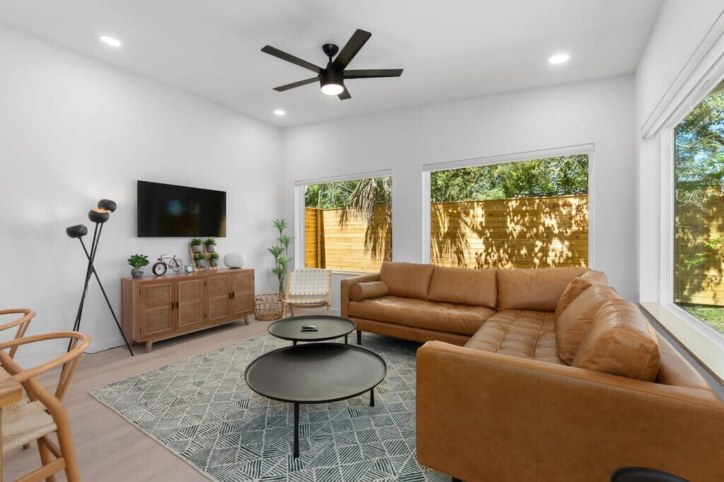 A bright and modern brand new 3-bedroom home in the historical West King district of downtown St. Augustine, just a 3-5 minute drive to the heart of downtown and a 10-minute drive to Vilano Beach. This pet-friendly home for one dog under 50 lbs features a fenced-in backyard with outdoor seating, a fully equipped kitchen, and off-street parking for 2-3 vehicles. Enjoy the convenience of a full-sized washer and dryer. Tastefully decorated and fully equipped for short or long stays, this home offers a king bed in the master bedroom with an en-suite bathroom featuring a walk-in shower, a queen bed in the second bedroom, and two twin beds in the third bedroom. A guest bathroom with a tub/shower combo is also available. Pets are welcome with a fee of $100 per stay for one dog under 50 lbs. The dog must be up to date on vaccinations, have flea treatment, and be potty trained. Guests are responsible for any damages caused by the pet during their stay. Additional charges will apply if dog feces is not picked up and properly disposed of ($50 per pile). The Peaceful Puffin is located in the West King district, full of history and charm. Just around the corner are popular local spots such as Buena Onda, the Cheese Wheel, and Bog Brewery. Downtown St. Augustine is only a short 3-5 minute drive or quick bike ride away, and Vilano Beach is just a 10-minute drive from the home. St. Augustine is the nation’s most historic city and offers flavorful dining, art, and culture with an abundance of entertainment right on your doorstep. From the Castillo de San Marcos National Monument to the Ripley’s Believe It or Not Museum, there is something for everyone just minutes from the home. The best way to get around St. Augustine is with your own car or a rental, with free parking space for up to 3 cars included with your stay. Guests can also use rideshare apps like Uber and Lyft or call a taxi. Quiet hours are from 9pm to 8am per St. Johns County ordinance and are enforced. The minimum age to book is 21, and the primary guest on the reservation must be present for the duration of the stay. No parties are allowed, and any guests visiting outside of the reservation must be approved by hosts prior to their arrival. Late check-outs and early check-ins are subject to an additional fee of $50 per hour. No vaping or smoking is allowed on the property, including the front porch. If evidence of smoking is found, an additional cleaning fee will be applied. Do not flush anything down the toilet except toilet paper. Parents with younger children use the home at their own risk as it is not child-proofed. Checkout procedures must be completed as written and posted in the house. Any excessive mess will result in additional cleaning fees.
