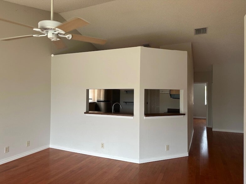 TOWN HOME 3 BEDROOMS/2 BATHS WITH 1 CAR GARAGE. SPACIOUS OPEN FLOOR PLAN HAS VAULTED CEILINGS WITH BEAUTIFUL LAKE VIEW FROM ENCLOSED SCREENED BALCONY. SPLIT BEDROOMS. NEW STOVE. FULL SIZE WASHER DRYER. MAIN LIVING AREA ON 2ND FLOOR. BOTH BATHROOMS ARE NEWLY RENOVATED. WALKIN SHOWER IN PRIMARY. 2ND BATH HAS TUB/SHOWER. LAMINATE FLOORS AND STAIRS. GARAGE HAS A LARGE STORAGE CLOSET. DOS LAGOS IS A QUIET GATED COMMUNITY WITH COMMUNITY POOL, CLUBHOUSE AND TENNIS. LOCATED MINUTES FROM 1-95. COFFEE SHOPS, GYMS, PLAZAS AND DINING. ALL AGES. NO pets allowed per association rule.