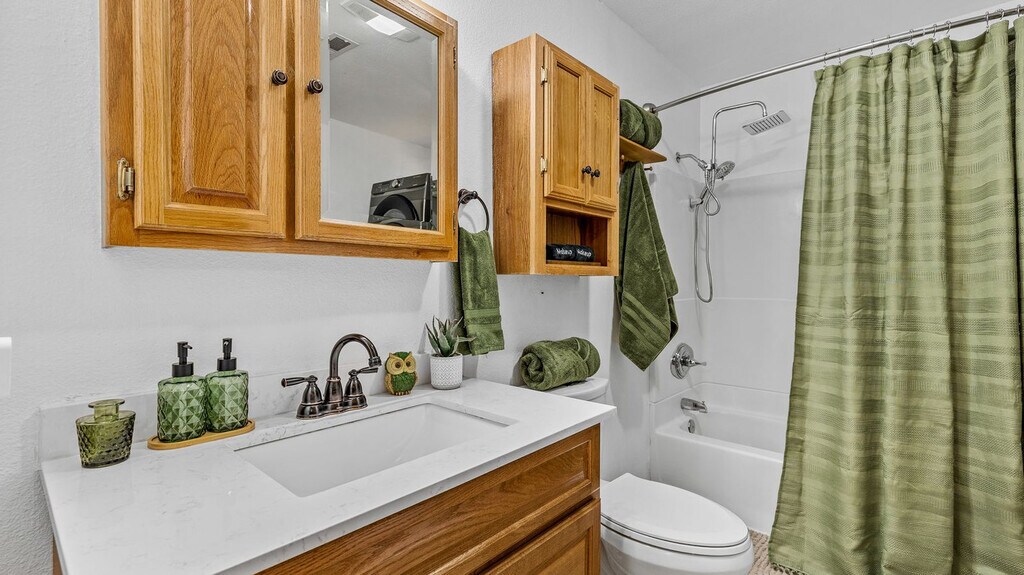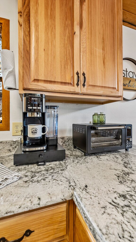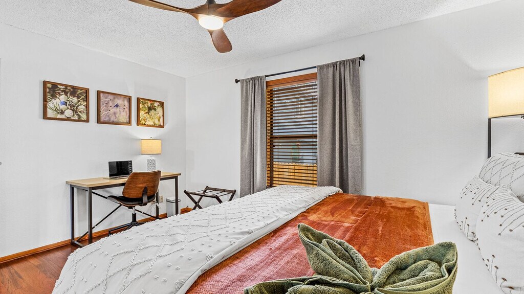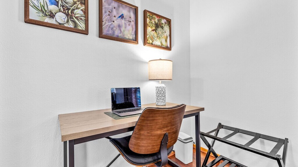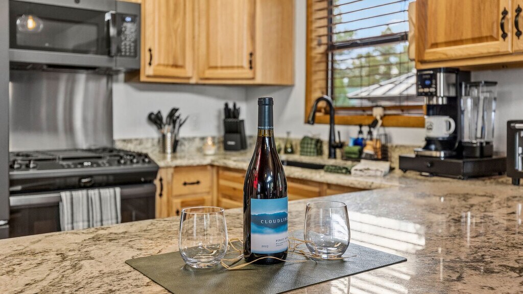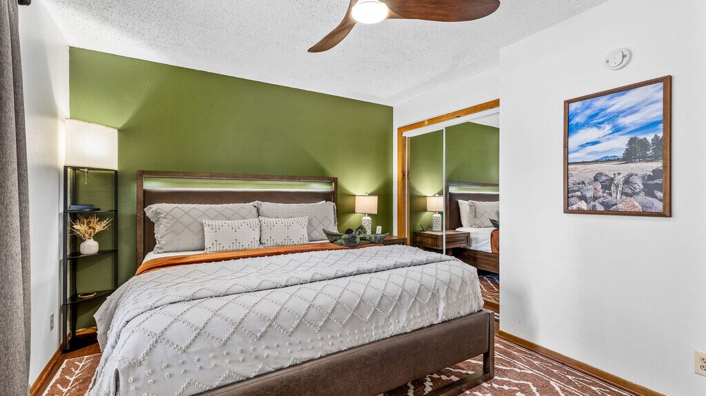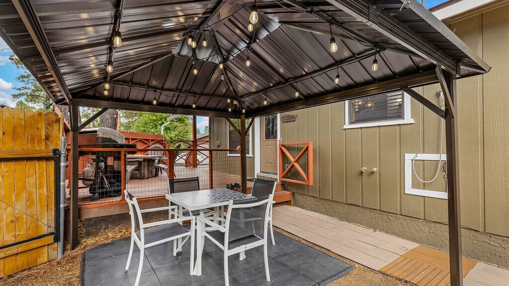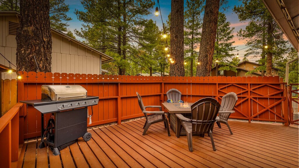 Feel at home in this modern yet cozy 2-bedroom Flagstaff cabin, just minutes from downtown, Snowbowl, Sedona, and the Grand Canyon. Blending rustic charm with modern comfort, it’s the ideal Northern Arizona getaway. This single-level cabin features a stone fireplace, a fully stocked modern kitchen with stainless steel appliances, and Alexa devices for convenience and entertainment. The kitchen is equipped with granite countertops, natural wood cabinetry, a refrigerator with water/ice, microwave, oven, stove, coffee maker, blender, and toaster oven. It is fully stocked with cookware, utensils, dish soap, hand soap, garbage bags, and paper towels. Enjoy the gigabit high-speed internet and mesh Wi-Fi network, smart TVs, a dining table with seating for six, and a cozy living room with a queen-size pull-out sofa bed. This is a pet-friendly property with a fully enclosed backyard. Private parking is available. Located in Mountainaire Pines, one of Flagstaff’s most peaceful and scenic neighborhoods, this cabin offers a true cabin-in-the-woods atmosphere while still being just minutes from Old Town Flagstaff’s dining, breweries, and shops. Guests enjoy quick access to I-17 for day trips to the Grand Canyon, Sedona, and Snowbowl Ski Resort, plus countless nearby hiking and biking trails. The cabin is 6 miles from Flagstaff Pulliam Airport. The house uses an automation interface offering the ability to control door locks and the thermostat. Includes a dedicated workspace. Registration Number: STR-25-0776 [SI]
