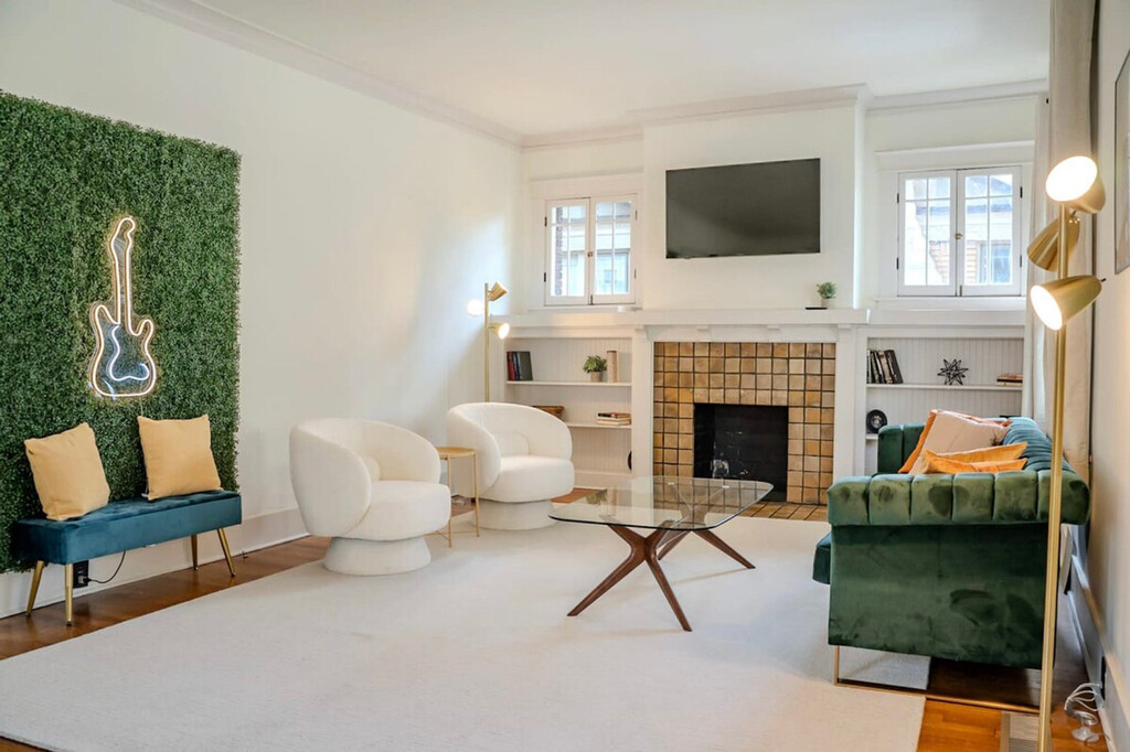 This luxury historic home in the heart of Memphis offers everything you need for a fun escape to the Rock n' Roll city. Located just 3.5 miles from Beale Street and seconds from grocery stores, this newly renovated property as of October 2023 features five bedrooms and three and a half bathrooms, comfortably accommodating up to 12 guests. Enjoy the convenience of driveway parking and outdoor seating with a comfy sectional couch. Welcome to your home away from home! The main spaces of this property include five bedrooms and three and a half bathrooms. The chef’s kitchen is fully stocked with high-end appliances, a large refrigerator, ample cabinetry, and a large island with high seating. The living room boasts a 50" smart TV, plush sofa, modernized lamps, and ample plush seating, all within an open floor concept directing to the kitchen and dining area. The basement includes a washer and dryer, while the game room offers arcade games and a shuffleboard table. We are pet-friendly, allowing up to two dogs for $125 per stay. Enjoy outdoor amenities such as a BBQ grill, a fire pit, a fully fenced yard, and a professionally installed putt-putt green. Uber and Lyft are reliable modes of transportation in the area, making it easy to explore Memphis and its attractions. The primary guest must be at least 21 years of age to book this property. There is a strict no-parties policy, and violating this rule is grounds for termination. The guest count at the house must be 12 max at any point in time, including daytime guests. A simple screening process is required within 48 hours of booking confirmation, and a rental agreement must be signed prior to check-in. A non-refundable $60 damage waiver is required, covering accidental damage during your stay, provided it is reported before check-out. [SI]