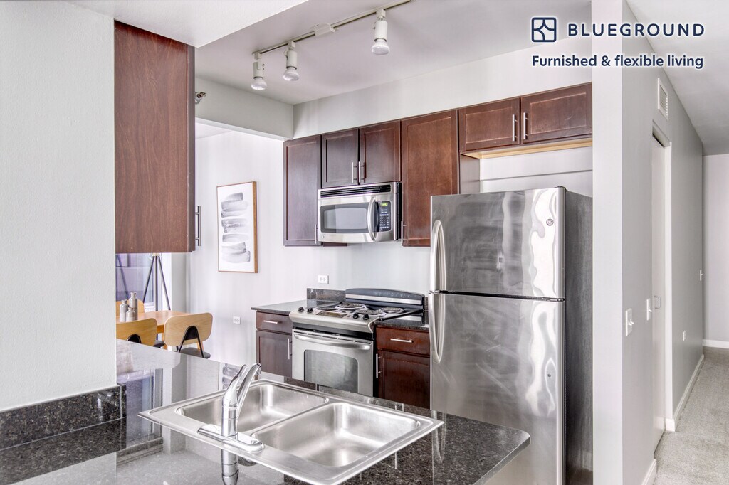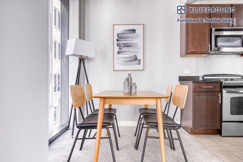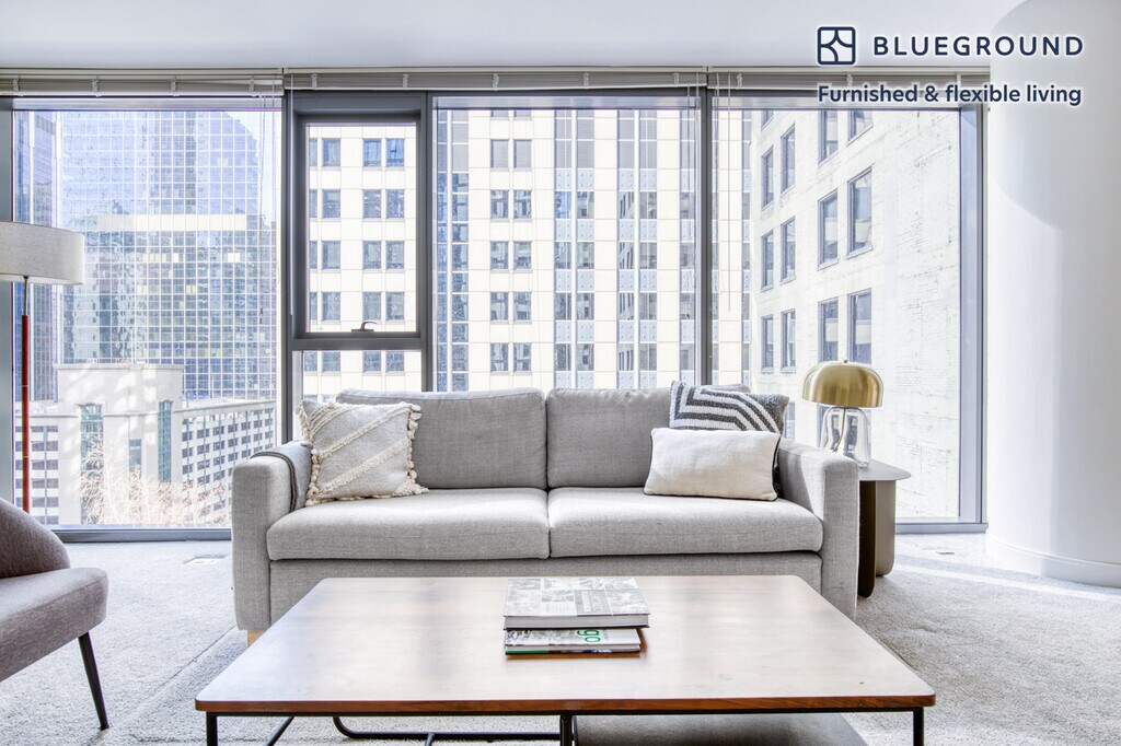 Feel at home wherever you choose to live with Blueground. You’ll love this stylish Chicago Loop furnished one bedroom apartment with its modern decor, fully equipped kitchen, and spacious living room with great views. Ideally located, you’re close to all the best that Chicago has to offer! (ID #CHI595) The advertised rate of $2,190/month is the lowest available price, based on a 2 month(s) and 29 day(s) stay with a move-in date of October 30, 2025. If you’re looking for a 1-year stay, the rate is $3,230/month. Rates vary depending on the duration of stay, season, and other parameters. For exact pricing and additional pricing components, please visit our website and enter your desired move-in and move-out dates. The rate is applicable when billed upfront; it can be higher if billed in multiple payments. Brokers are welcome to reach out. Were you looking for an unfurnished lease? Try Blueground instead and upgrade from unfurnished to furnished living: - Furnished at rates comparable to unfurnished - No setup or furniture costs - save thousands - Move-in ready - save time, just bring your suitcase Designed with you in mind Gorgeous furniture, fully equipped kitchen, smart TV, and a premium wireless speaker are just a few of the amenities you’ll find inside this one bedroom apartment. Ideally located in Chicago, you’ll find a lot to love outside as well. When you’re ready to relax, you’ll be happy to discover every Blueground bedroom comes with superior quality mattresses, luxury linens, and cozy towels. We handle everything so you can simply show up and start living. This apartment also offers in-apartment laundry. Sleeping arrangements Queen Bed, 63in/160cm Amenities Building amenities unique to this one bedroom apartment include an on-site: - BBQ Area - Doorman - Dryer - Elevator - Swimming pool - Washing machine - Lounge - Pets allowed Arrival and ongoing support The entire apartment is yours to enjoy! Throughout your stay, you’ll have access to our Client Experience team through the Blueground App. You can schedule additional cleanings, submit maintenance requests, and view our neighborhood recommendations with just a few taps. We’ll share all details upon confirmation of your stay. Other things to note Building amenities may have an extra cost. This Blueground apartment has flexible lease options, allowing you to book it for one month, a year, or more. Pets are welcome, though weight limits and breed restrictions apply and may incur fees. We take great pride in ensuring every photo displayed is shot in our own units with our actual furnishings. That said, we regularly refresh our decor and furniture arrangement, which may differ from what’s pictured. Also note - This apartment's central location means it can be noisy at times - This apartment is located near a railway, so expect to hear moderate noise when trains pass - This is a guarded building equipped with a doorman/concierge at all times [SI]