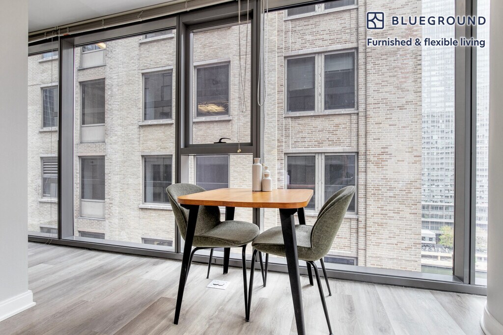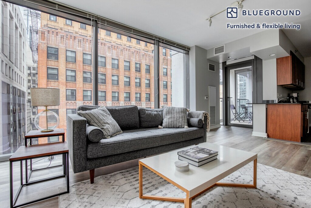 Feel at home wherever you choose to live with Blueground. You’ll love this sophisticated Chicago Loop furnished one bedroom apartment with its modern decor, fully equipped kitchen, and lovely living room. Ideally located, you’re close to all the best that Chicago has to offer! (ID #CHI1073) The advertised rate of $2,010/month is the lowest available price, based on a 1 month(s) and 4 day(s) stay with a move-in date of November 25, 2025. If you’re looking for a 1-year stay, the rate is $3,570/month. Rates vary depending on the duration of stay, season, and other parameters. For exact pricing and additional pricing components, please visit our website and enter your desired move-in and move-out dates. The rate is applicable when billed upfront; it can be higher if billed in multiple payments. Brokers are welcome to reach out. Were you looking for an unfurnished lease? Try Blueground instead and upgrade from unfurnished to furnished living: - Furnished at rates comparable to unfurnished - No setup or furniture costs - save thousands - Move-in ready - save time, just bring your suitcase Designed with you in mind Gorgeous furniture, fully equipped kitchen, smart TV, and a premium wireless speaker are just a few of the amenities you’ll find inside this one bedroom apartment. Ideally located in Chicago, you’ll find a lot to love outside as well. When you’re ready to relax, you’ll be happy to discover every Blueground bedroom comes with superior quality mattresses, luxury linens, and cozy towels. We handle everything so you can simply show up and start living. This apartment also offers in-apartment laundry. Sleeping arrangements Queen Bed, 63in/160cm Amenities Building amenities unique to this one bedroom apartment include an on-site: - BBQ Area - Doorman - Dryer - Elevator - Swimming pool - Washing machine - Lounge - Pets allowed Arrival and ongoing support The entire apartment is yours to enjoy! Throughout your stay, you’ll have access to our Client Experience team through the Blueground App. You can schedule additional cleanings, submit maintenance requests, and view our neighborhood recommendations with just a few taps. We’ll share all details upon confirmation of your stay. Other things to note Building amenities may have an extra cost. This Blueground apartment has flexible lease options, allowing you to book it for one month, a year, or more. Pets are welcome, though weight limits and breed restrictions apply and may incur fees. We take great pride in ensuring every photo displayed is shot in our own units with our actual furnishings. That said, we regularly refresh our decor and furniture arrangement, which may differ from what’s pictured. Also note - This apartment's central location means it can be noisy at times - This apartment is located near a railway, so expect to hear moderate noise when trains pass - This is a guarded building equipped with a doorman/concierge at all times [SI]