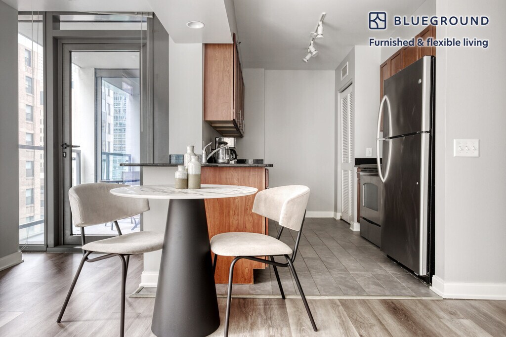 Discover the best of Chicago, with this one bedroom apartment in The Loop with balcony views over the city. It’ll be easy to simply show up and start living in this furnished apartment with its fully equipped kitchen, living room, and our dedicated, on-the-ground support. (ID #CHI696) The advertised rate of $2,698/month is the lowest available price, based on a 1 month(s) and 17 day(s) stay with a move-in date of March 2, 2026. If you’re looking for a 1-year stay, the rate is $3,464/month. Rates vary depending on the duration of stay, season, and other parameters. For exact pricing and additional pricing components, please visit our website and enter your desired move-in and move-out dates. The rate is applicable when billed upfront; it can be higher if billed in multiple payments. Brokers are welcome to reach out. Were you looking for an unfurnished lease? Try Blueground instead and upgrade from unfurnished to furnished living: - Furnished at rates comparable to unfurnished - No setup or furniture costs - save thousands - Move-in ready - save time, just bring your suitcase Designed with you in mind Thoughtfully designed with bespoke finishes, modern furnishings, and a fully equipped kitchen, you’ll enjoy that “I’m home” feeling with this Blueground apartment. Whether you’re lounging in your beautiful living room streaming the latest and greatest entertainment on the smart TV or premium wireless speaker, or getting some well-earned rest on the superior quality mattress with fully stocked linens, you’ll fall in love with everything this The Loop apartment has to offer. This apartment also offers in-apartment laundry. Sleeping arrangements King Bed, 70.8in/180cm Amenities Building amenities unique to this one bedroom apartment include an on-site: - BBQ Area - Doorman - Dryer - Elevator - Swimming pool - Washing machine - Lounge - Pets allowed Arrival and ongoing support The entire apartment is yours to enjoy! Throughout your stay, you’ll have access to our Client Experience team through the Blueground App. You can schedule additional cleanings, submit maintenance requests, and view our neighborhood recommendations with just a few taps. We’ll share all details upon confirmation of your stay. Ideally Located This furnished rental is situated in the most dynamic and convenient place to live in Chicago, The Loop. With its endless shopping, fine dining, stunning park, river and lake views, and entertainment opportunities, everything is possible at a moment’s notice. The area is a cultural getaway for professionals and students, who can combine work with pleasure. Discover landmark buildings like the Willis Tower and The Art Institute of Chicago. Millenium Park, near Lake Michigan, is always worth a visit. The Loop is within reach of accessible transportation, offering non-stop public transit, buses, and taxis. Union Station is approximately a 10 minute train ride. Other things to note Building amenities may have an extra cost. This Blueground apartment has flexible lease options, allowing you to book it for one month, a year, or more. Pets are welcome, though weight limits and breed restrictions apply and may incur fees. We take great pride in ensuring every photo displayed is shot in our own units with our actual furnishings. That said, we regularly refresh our decor and furniture arrangement, which may differ from what’s pictured. Also note - This apartment's central location means it can be noisy at times - This apartment is located near a railway, so expect to hear moderate noise when trains pass - This is a guarded building equipped with a doorman/concierge at all times [SI]