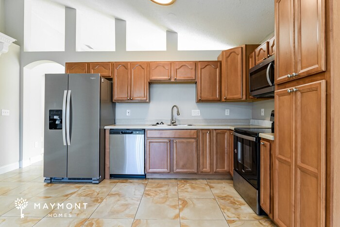 MOVE-IN READY This home is move-in ready. Schedule your tour now or start your application today. Monthly Recurring Fees: $25.00 - Smart Home $10.95 - Utility Management Maymont Homes is committed to clear and upfront pricing. In addition to the advertised rent, residents may have monthly fees, including a $10.95 utility management fee, a $25.00 wastewater fee for homes on septic systems, and an amenity fee for homes with smart home technology, valet trash, or other community amenities. This does not include utilities or optional fees, including but not limited to pet fees and renter’s insurance. Welcome to this beautifully maintained 3-bedroom, 2-bathroom residence featuring a stucco exterior, two-car garage, and a large front lawn that adds instant curb appeal. This single-level home combines comfort and style, perfect for everyday living and entertaining. Step inside to discover a bright, open floor plan filled with natural light. Tile flooring flows through the main living areas, complementing the vaulted ceilings that create an airy, inviting feel. The spacious living room is ideal for relaxing or hosting guests. The eat-in kitchen features vaulted ceilings, a charming chandelier, and sliding glass doors that open to a private backyard, the perfect spot to enjoy tranquil pond views. The kitchen offers ample wood cabinetry and generous counter space, making meal prep a pleasure. Retreat to the large primary bedroom, complete with LVP flooring, vaulted ceilings, and a private ensuite bath. The bathroom showcases dual sinks, a shower/tub combo, white quartz countertops, and tile floors for a clean, modern look. Two additional bedrooms offer comfort and versatility, ideal for guests, or a home office. The second full bathroom is bright and well-appointed, featuring a shower/tub combo and stylish finishes. This home also comes equipped with a smart lock and smart thermostat, giving you both comfort and convenience at your fingertips, enjoy modern living with added peace of mind and energy efficiency. Outside, enjoy the fully fenced backyard with peaceful pond views, a serene backdrop for morning coffee or evening relaxation. Located near major commuting routes, this home offers convenient access to shopping, dining, and entertainment, just 30 minutes to Disney World and 30 minutes to Orlando International Airport. Come see why this Kissimmee gem is the perfect blend of comfort, convenience, and Florida charm! *Maymont Homes provides residents with convenient solutions, including simplified utility billing, a flexible rent payment option, and an affordable security deposit alternative. Visit our website or contact us for more details. This information is deemed reliable, but not guaranteed. All measurements are approximate. Actual product and home specifications may vary in dimension or detail. Images are for representational purposes only. Some programs and services may not be available in all market areas. Prices and availability are subject to change without notice. Advertised rent prices do not include the required application fee, the partially refundable reservation fee (due upon application approval), or the mandatory monthly utility management fee (in select market areas.) Residents must maintain renters insurance as specified in their lease. If third-party renters insurance is not provided, residents will be automatically enrolled in our Master Insurance Policy for a fee. Select homes may be located in communities that require a monthly fee for community-specific amenities or services. For complete details, please contact a company leasing representative. Equal Housing Opportunity. This property is subject to homeowners' association (HOA) governance; restrictions and covenants may apply. Estimated availability date is subject to change based on construction timelines and move-out confirmation. This property allows self guided viewing without an appointment. Contact for details.