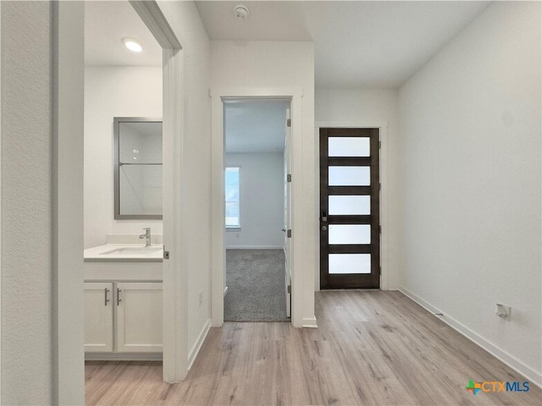 2024 modern design home ready for immediate move in today. Excellent location in award winning Bar W. Ranch Subdivision. Open & spacious, this entertainer's delight connects you with your environment via open bar top seating, views overlooking an open kitchen concept with extended covered back patio living and private backyard. Fourth bedroom is separated and front facing making an ideal home office if needed. Tall ceilings, light and bright granite countertops, 42" tall upper cabinets, stainless steel appliances really make this model shine. Primary en-suite features a roomy bathroom with a double vanity and walk-in shower. Texas sized back covered patio/porch. Pre-wired with smart home features: Video doorbell, Honeywell T6 Pro Z-Wave Thermostat, Qolsys IQ Panel, Amazon Echo Pop, Kwikset Home Connect 620, Deako Smart Switch. Conveniently located near the new HEB at Ronald Reagan and 183A Tollway for a quicker commute.