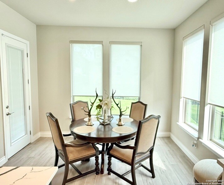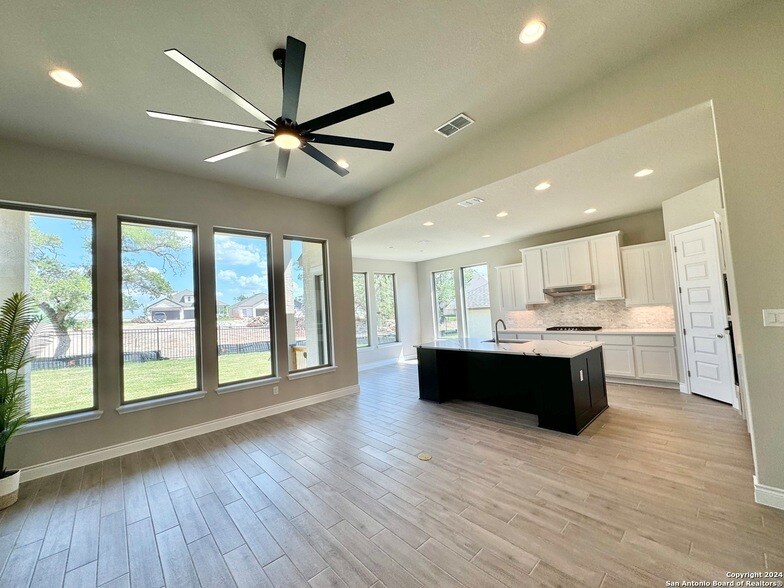 Welcome to Esperanza voted the best luxury subdivision! Recent construction home in the highly desirable Bravada enclave. Enjoy luxury finishes, soaring ceilings, 8 ft doors, quartz countertops throughout, soft close cabinet hardware, wood tile in the main living spaces. Second primary/ guest room with ensuite bath. Four bedrooms PLUS an office. On demand, gas hot water heater so you never run out hot water. Super energy efficient with radiant barrier, THREE insulated garage doors, 100% masonry exterior. Ceiling fans in all bedrooms. Custom shades. Enjoy the amazing amenities including fitness center, dog park, pool, walking trails.
