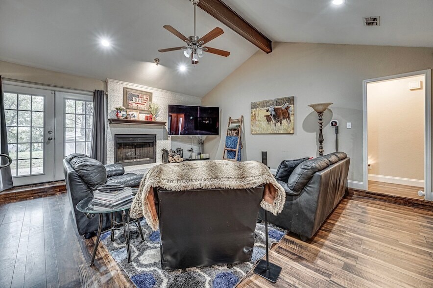 Charming RANCH-STYLE Home on HALF an ACRE NO HOA! Tucked away on a peaceful CUL-DE-SAC just outside the CITY LIMITS, this beautifully maintained 3-BEDROOM, 2-BATH home offers the perfect blend of COUNTRY CHARM and MODERN COMFORT. Located in a quiet, well-kept neighborhood, you ll enjoy the freedom of NO HOA and the convenience of being just minutes from TOP-RATED SCHOOLS, SHOPPING, and DINING. Inside, the inviting LIVING AREA features a cozy WOOD-BURNING FIREPLACE, while the KITCHEN and BATHROOMS boast GRANITE COUNTERTOPS for a stylish and durable finish. The REDESIGNED PRIMARY BATHROOM offers a SPA-LIKE RETREAT, and the home s THOUGHTFUL LAYOUT makes both daily living and entertaining effortless. Step outside to a spacious, PRIVATE BACKYARD ideal for GARDENING, building a WORKSHOP, or even adding a POOL. Valuable upgrades include a 50-AMP ELECTRICAL PEDESTAL (perfect for RV HOOKUP), EPOXY-COATED GARAGE FLOOR, ENERGY-EFFICIENT WINDOWS installed in 2018, FOUNDATION DRIP SYSTEM on a TIMER, and a BRAND-NEW ROOF (2025) with TRANSFERABLE WARRANTY in the new owner s name. This rare combination of SPACE, PRIVACY, and SMART UPDATES is hard to find SCHEDULE YOUR SHOWING TODAY!