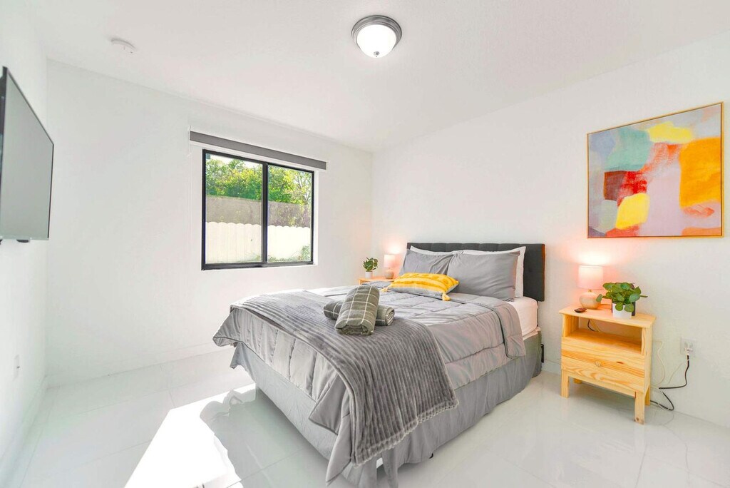 Discover the warmth and charm of this inviting 3-bedroom duplex, perfectly located in Miami’s Upper East Side, just steps from the character-filled MiMo District. Whether you're planning beach days, art adventures in Wynwood, shopping in the Design District, or nights out in South Beach, you’ll be right in the heart of it all. Inside, you’ll find all the comforts of home, including a fully equipped kitchen, three comfortable bedrooms for restful nights, and free high-speed Wi-Fi to stay connected. Designed with your comfort in mind, the home includes three cozy bedrooms with queen beds for restful sleep, a comfy sofa bed in the living room, a fully equipped kitchen with everything you need to cook at home, and a washer and dryer for added convenience during longer stays. Enjoy the ease of on-site parking at no extra cost. Follow posted guidelines and avoid leaving valuables in your vehicle. While we aim to offer a safe space, we’re not responsible for lost or stolen items or vehicle damage. Welcome to a dynamic and diverse area in the heart of Miami! This upcoming neighborhood offers a blend of local culture, convenience, and proximity to Miami's most famous attractions, making it an excellent base for your stay. Immerse yourself in the authentic Miami vibe with local eateries, family-run shops, and hidden gems that give you a taste of the city's rich cultural tapestry. Just 10 minutes to Wynwood Arts District, 15 minutes to the Design District, and a 20-minute drive to South Beach. Nearby supermarkets and convenience stores ensure you have everything you need for your stay. Major highways like I-95 and SR-112 are easily accessible, making travel throughout Miami a breeze. Take a moment to unwind at nearby parks like Arcola Lakes Park or Hadley Park, both offering opportunities for relaxation and recreation. This neighborhood blends the best of local living with easy access to Miami's must-see destinations. Whether you're here for work, a family trip, or a getaway, you'll feel right at home. Your comfort is our priority! Basic supplies will be provided upon arrival to ensure a smooth start to your stay. This house is part of a duplex. No parties or excessive noise are allowed to maintain a peaceful atmosphere; violations may result in fines from the building. Quiet hours are between 22:00 and 8:00. Smoking is strictly prohibited inside the property and may result in a fine if violated. Please be mindful of excessive noise, as the property is located in a peaceful residential area. Check-in starts at 4:00 PM and check-out is scheduled for 11:00 AM. Late check-out incurs an additional fee. Unfortunately, the property cannot receive packages from services like Amazon, eBay, or Best Buy. While the property is fully equipped for your comfort, washcloths are not provided. Kindly ensure all household items remain inside the property to maintain the set-up for future guests. If linens, towels, or keys are lost, a replacement fee will be charged. Please turn off the air conditioning when leaving the property to maintain an eco-friendly environment. [SI]