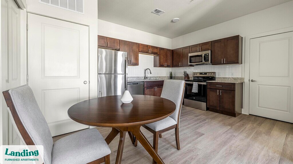 Landing offers flexible lease terms from weeks to months. Please always visit our website or contact us for the latest pricing & availability. Stay longer, save more: 6-Month Minimum base rent: starts at $1783/mo 12-Month Minimum base rent: starts at $1783/mo Landing offers flexible leases across a network of over 35,000 fully-furnished apartments throughout 375+ cities so you can rent on your terms, practically anywhere, and avoid the hassle of paying deposits or application fees. Visit to learn about all the benefits of a Landing membership, see our competitive up-to-date pricing, explore available apartments, take virtual tours, and make reservations online without jumping through traditional rental hoops. Landing's apartments at The Stanton are designed for comfortable, easy living, with the ability to stay as long as you like. Experience living with Landing Every apartment is outfitted with all the modern essentials including: custom-designed furnishings, a fully-equipped kitchen with deluxe stainless steel appliances, a gourmet coffee maker, premium linens, Smart TVs, and incredibly fast, reliable internet for working from home. When you live with Landing, you'll enjoy a hassle-free experience with the added benefit of 24/7 access to our dedicated member experience team. Some of the nitty-gritty: a background check and proof of income are required; we're completely smoke-free; bundled utility packages and pricing vary based on length of stay; pet-friendly options available; listed price reflects a 12-month minimum stay.