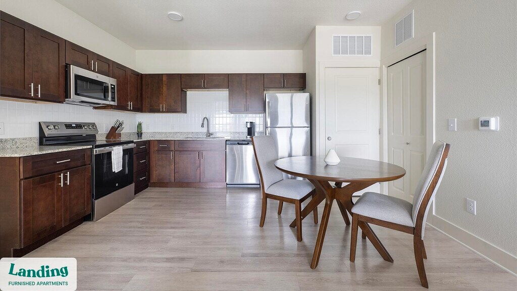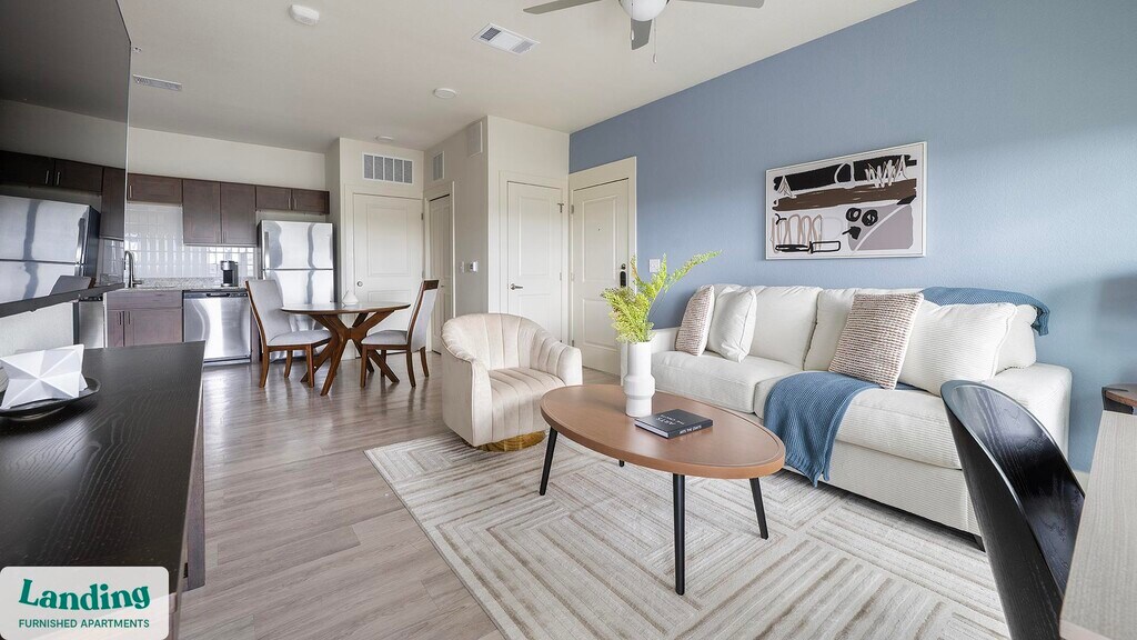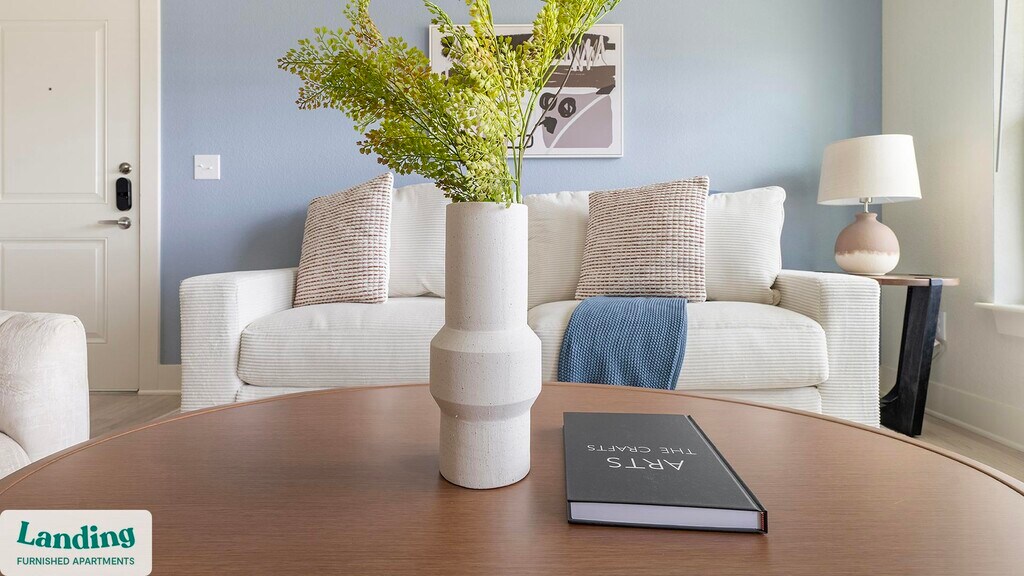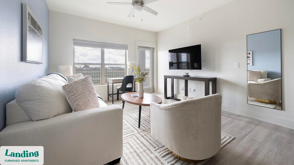 Landing offers flexible lease terms from weeks to months. Please always visit our website or contact us for the latest pricing & availability. Stay longer, save more: 6-Month Minimum base rent: starts at $1385/mo 12-Month Minimum base rent: starts at $1515/mo Landing offers flexible leases across a network of over 35,000 fully-furnished apartments throughout 375+ cities so you can rent on your terms, practically anywhere, and avoid the hassle of paying deposits or application fees. Visit to learn about all the benefits of a Landing membership, see our competitive up-to-date pricing, explore available apartments, take virtual tours, and make reservations online without jumping through traditional rental hoops. Landing's apartments at The Stanton are designed for comfortable, easy living, with the ability to stay as long as you like. Experience living with Landing Every apartment is outfitted with all the modern essentials including: custom-designed furnishings, a fully-equipped kitchen with deluxe stainless steel appliances, a gourmet coffee maker, premium linens, Smart TVs, and incredibly fast, reliable internet for working from home. When you live with Landing, you'll enjoy a hassle-free experience with the added benefit of 24/7 access to our dedicated member experience team. Some of the nitty-gritty: a background check and proof of income are required; we're completely smoke-free; bundled utility packages and pricing vary based on length of stay; pet-friendly options available; listed price reflects a 12-month minimum stay.