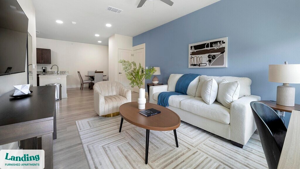 Landing offers flexible lease terms from weeks to months. Please always visit our website or contact us for the latest pricing & availability. Stay longer, save more: 6-Month Minimum base rent: starts at $1976/mo 12-Month Minimum base rent: starts at $1911/mo Landing offers flexible leases across a network of over 35,000 fully-furnished apartments throughout 375+ cities so you can rent on your terms, practically anywhere, and avoid the hassle of paying deposits or application fees. Visit to learn about all the benefits of a Landing membership, see our competitive up-to-date pricing, explore available apartments, take virtual tours, and make reservations online without jumping through traditional rental hoops. Landing's apartments at The Stanton are designed for comfortable, easy living, with the ability to stay as long as you like. Experience living with Landing Every apartment is outfitted with all the modern essentials including: custom-designed furnishings, a fully-equipped kitchen with deluxe stainless steel appliances, a gourmet coffee maker, premium linens, Smart TVs, and incredibly fast, reliable internet for working from home. When you live with Landing, you'll enjoy a hassle-free experience with the added benefit of 24/7 access to our dedicated member experience team. Some of the nitty-gritty: a background check and proof of income are required; we're completely smoke-free; bundled utility packages and pricing vary based on length of stay; pet-friendly options available; listed price reflects a 12-month minimum stay.